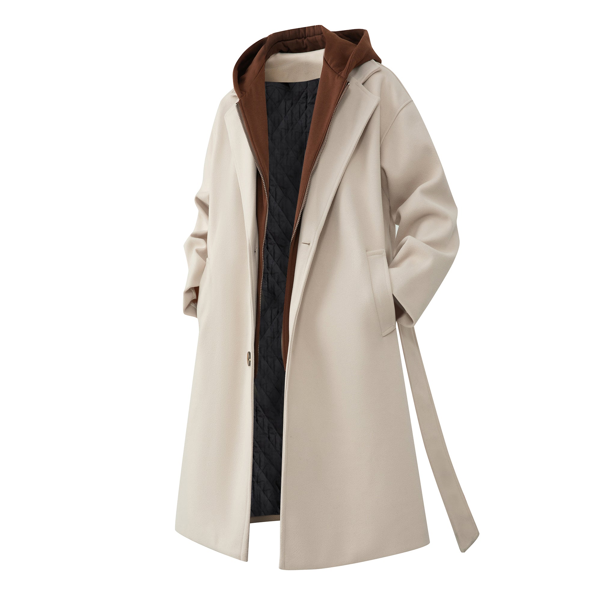 Мужское пальто David Beken в американском стиле с капюшоном и эффектом двухслойности. Модель с длинными рукавами, прямым силуэтом и двубортной...