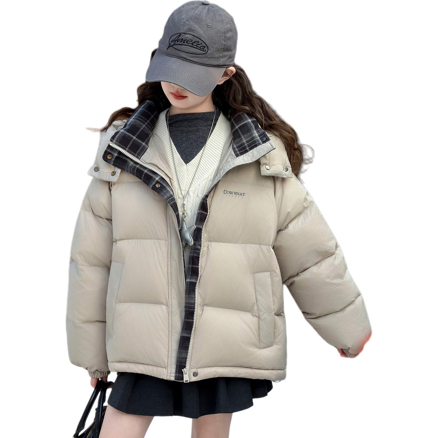 Короткий пуховик для девочек в корейском стиле с капюшоном, сочетающий модный дизайн и функциональность. Модель классического кроя обеспечивает тепло, комфорт...