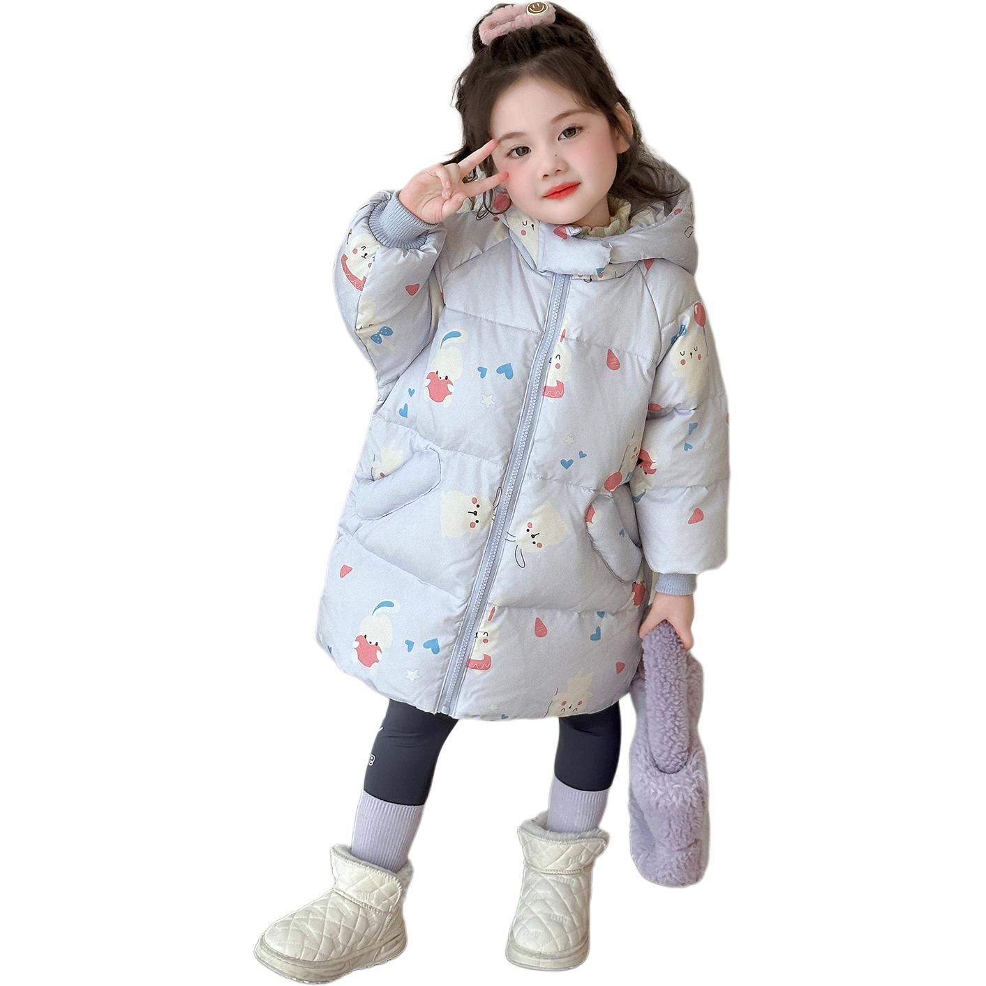 Длинный детский пуховик с капюшоном и милым анимационным принтом, выполненный из нейлоновой ткани. Модель свободного кроя обеспечивает тепло, комфорт и...