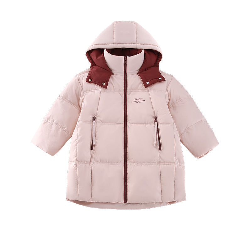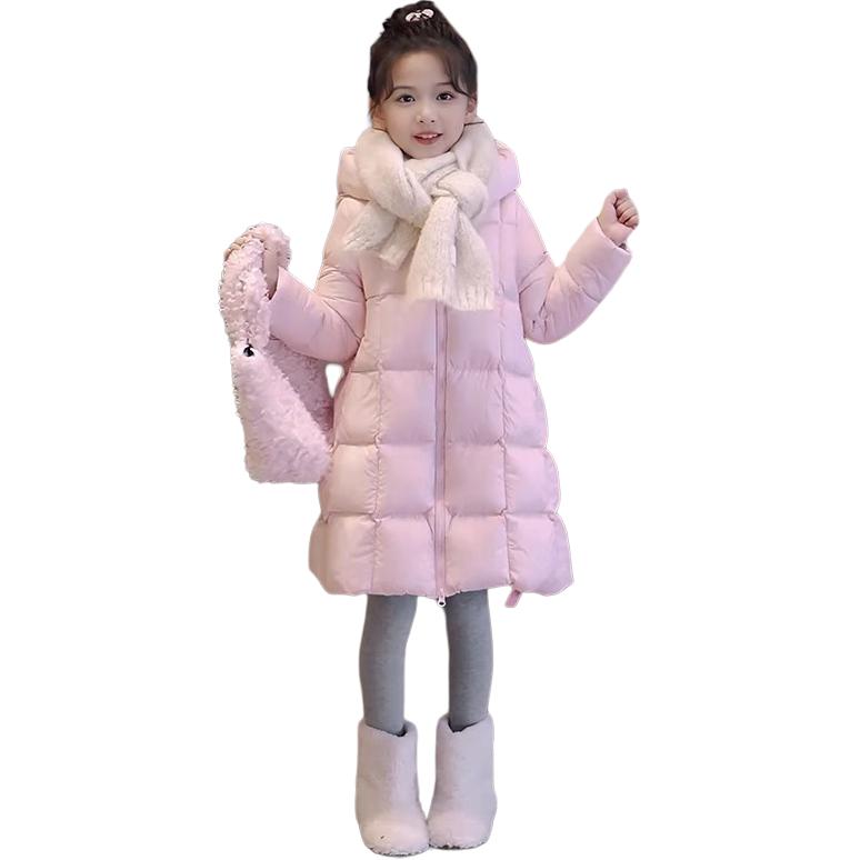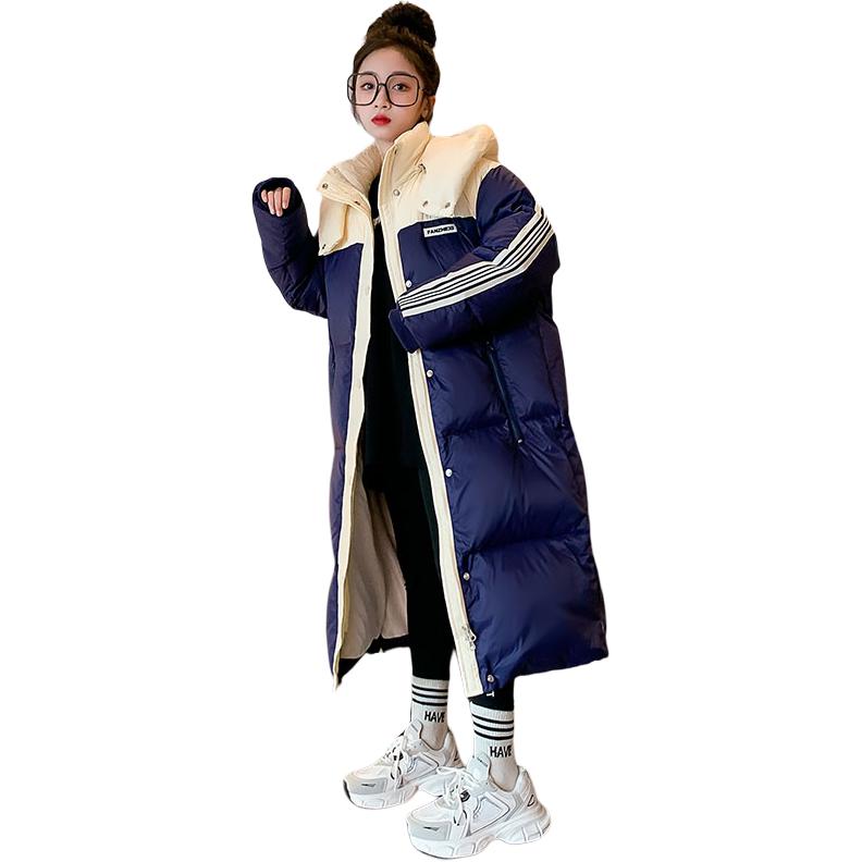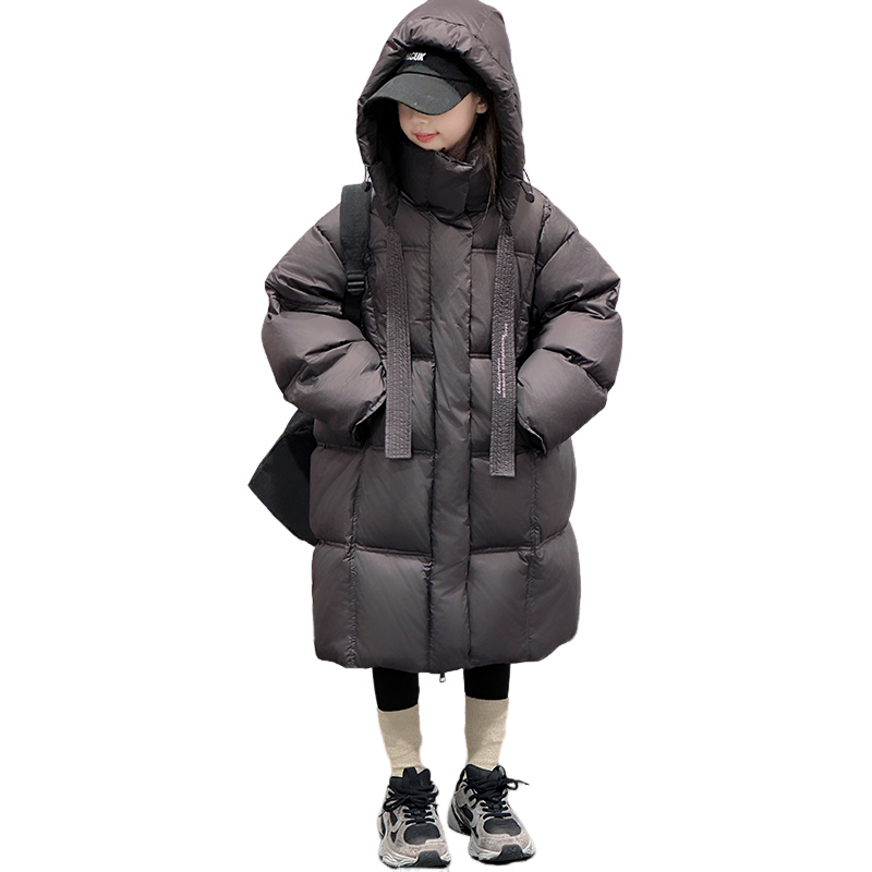 Длинный пуховик для девочек в корейском уличном стиле с капюшоном и утепленной подкладкой, наполненный белым утиным пухом. Модель свободного кроя...