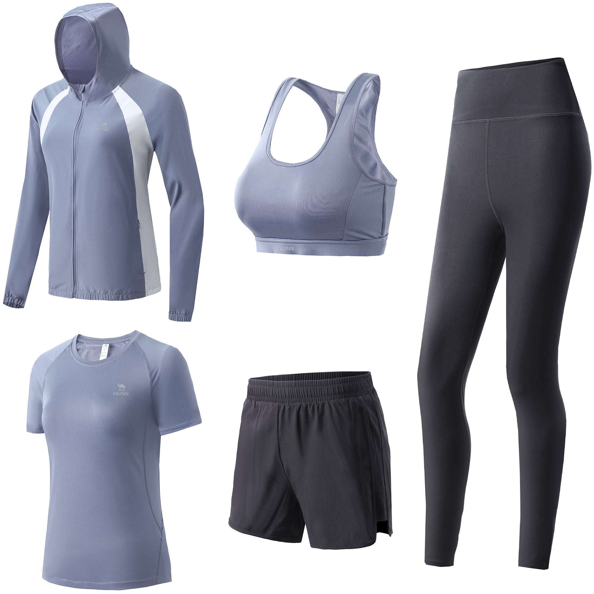 Лёгкий и эластичный спортивный комплект из пяти предметов для йоги, фитнеса и велотренировок. Функциональная модель из смесовой ткани обеспечивает быстрое...