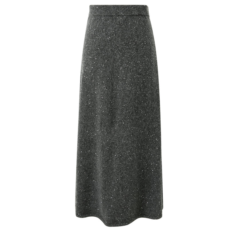 Прямая повседневная юбка с блёстками и боковым разрезом. Создаёт стильный и элегантный образ для повседневного и вечернего ношения.