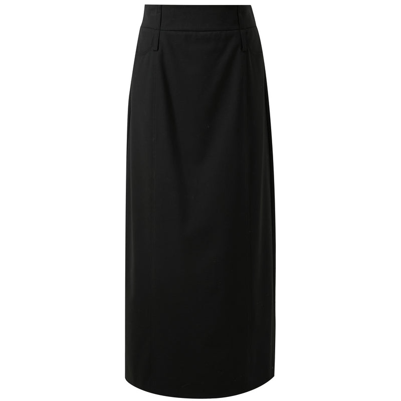 Длинная повседневная юбка А-силуэта с двойной талией и боковым разрезом. Создаёт комфортный и стильный городской образ.