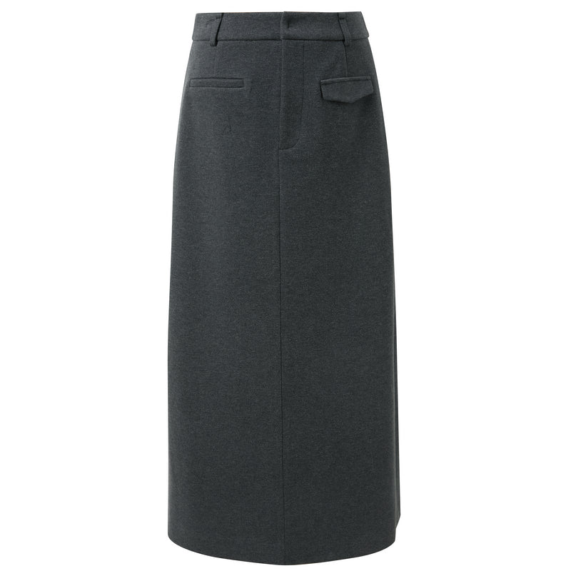 Прямая повседневная юбка с боковым разрезом и простой застёжкой. Подходит для создания комфортного и стильного городского образа.