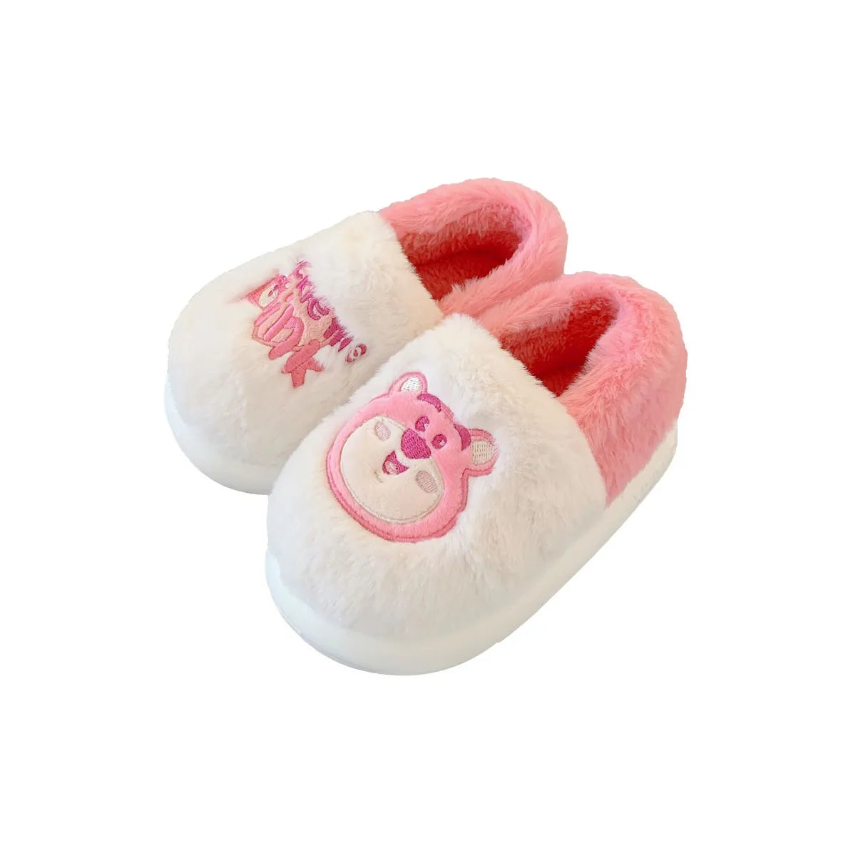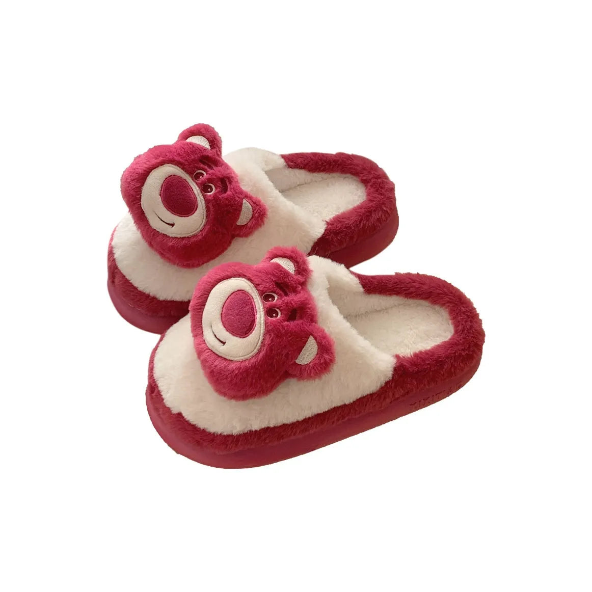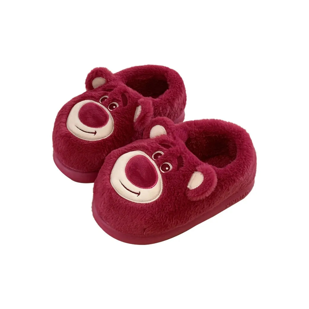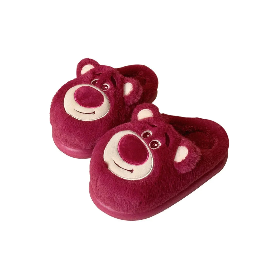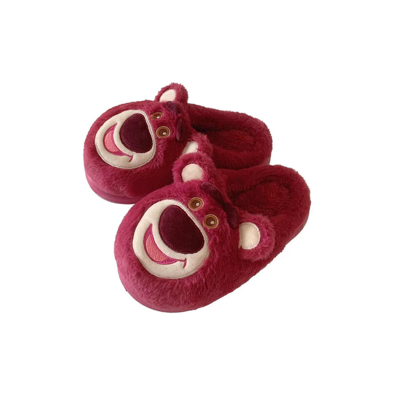 Тёплые плюшевые домашние тапочки с дизайном клубничного медведя из мультфильма «История игрушек», мягкой подошвой и закрытой пяткой. Подходят для мужчин...