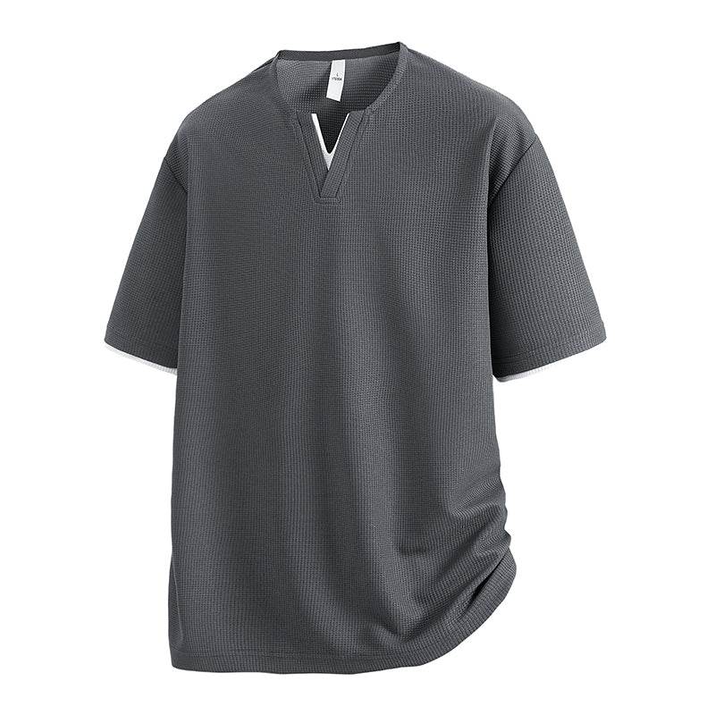 Унисекс футболка с эффектом "двойного слоя", V-образным вырезом и свободным кроем. Лаконичный дизайн в американском городском стиле — универсальный выбор...