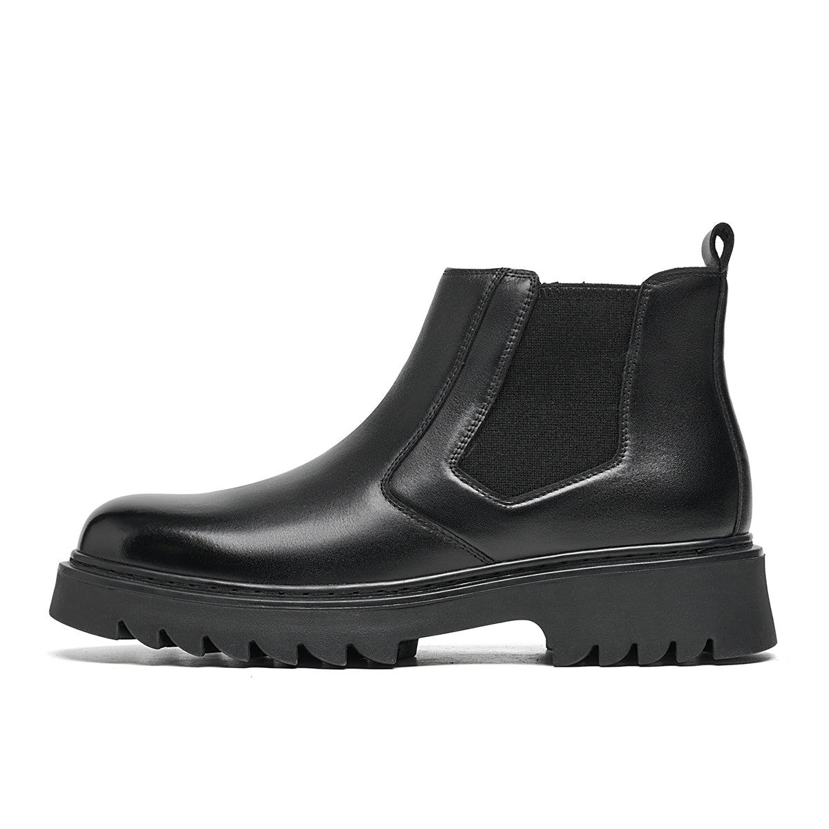 Короткие челси из слоя коровьей кожи, с утолщённой подошвой и мягкой подкладкой, в британском ретро-стиле, чёрного цвета. Обеспечивают комфорт и...