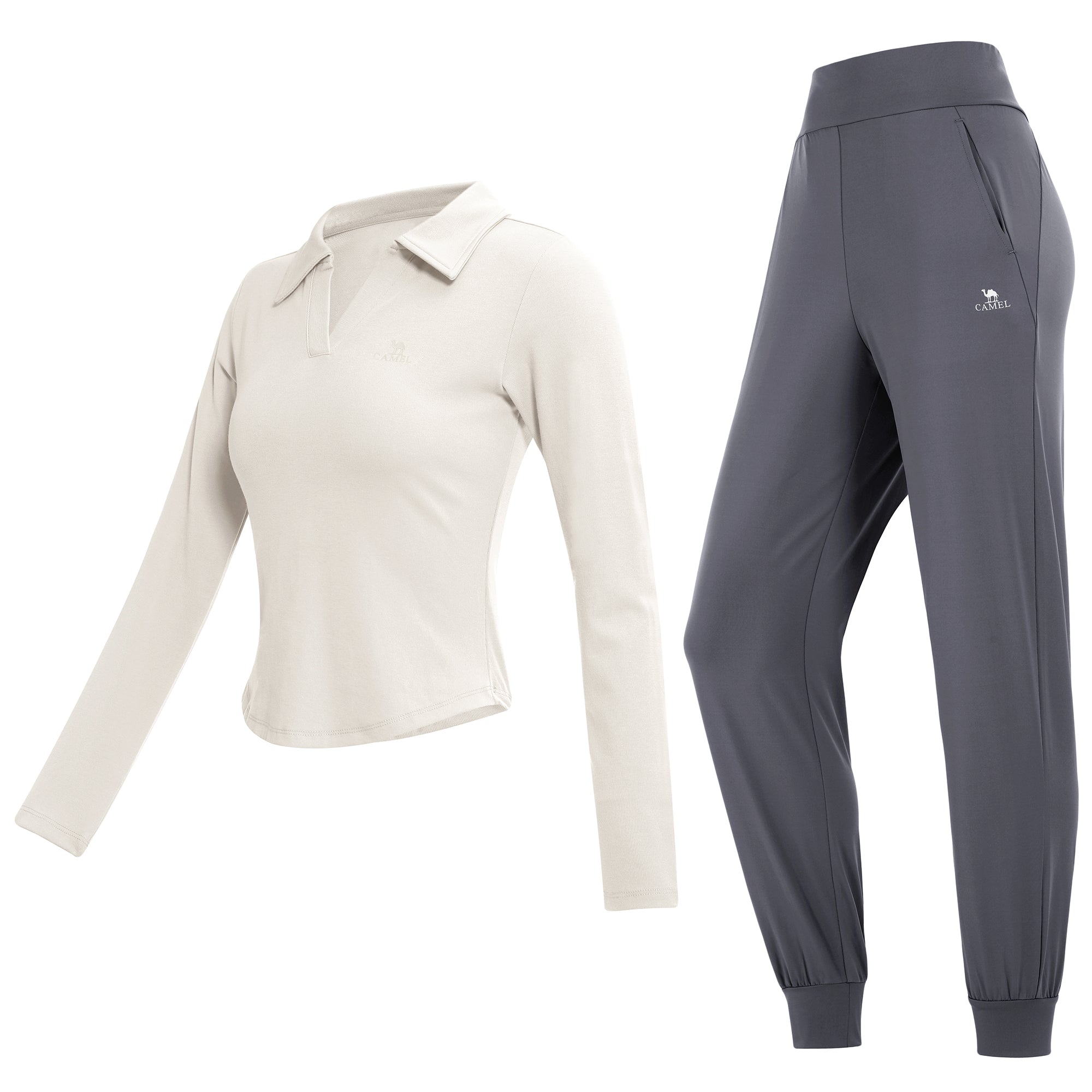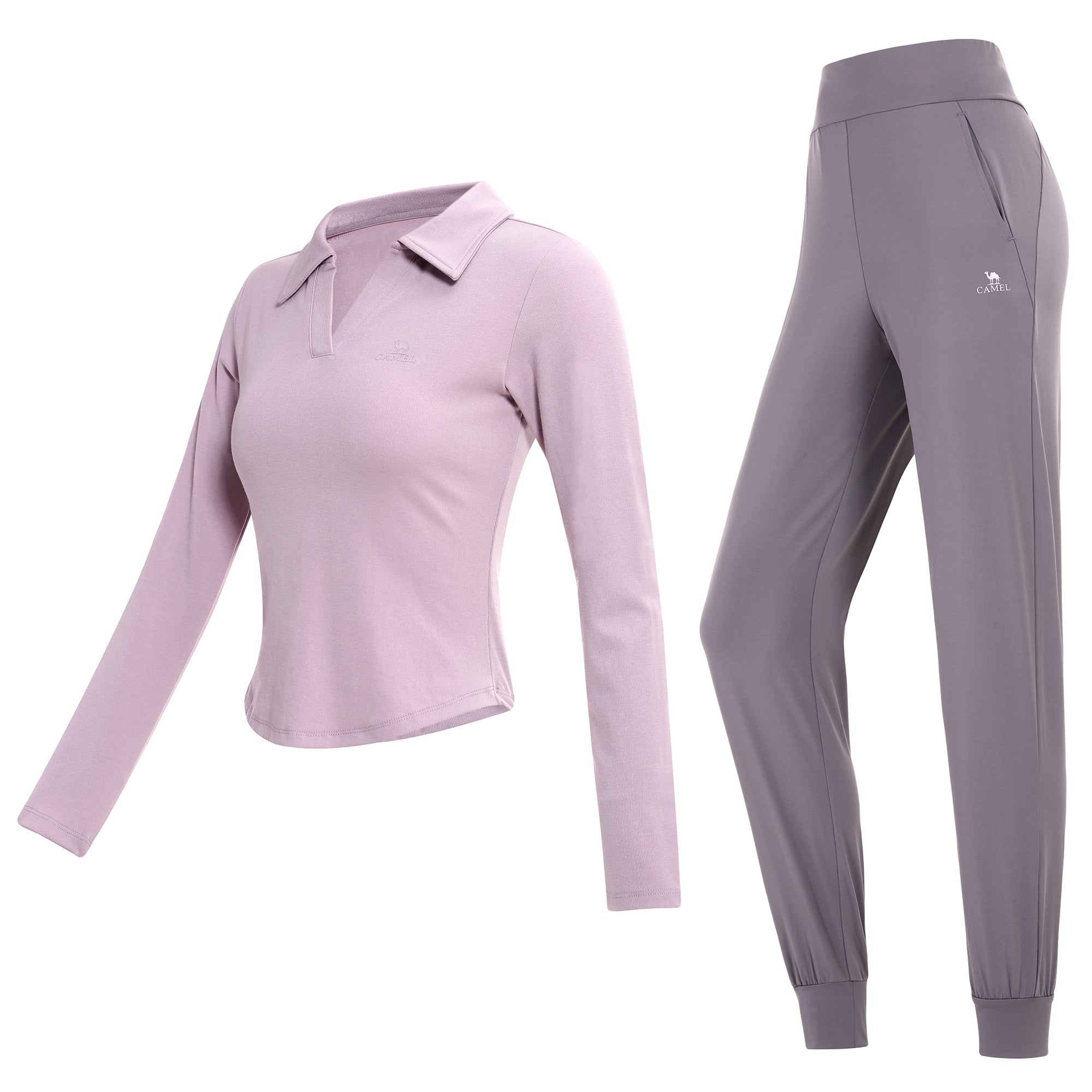 Женский спортивный костюм для йоги и тренировок, состоящий из облегающей поло с длинным рукавом и зауженных брюк с высокой талией....