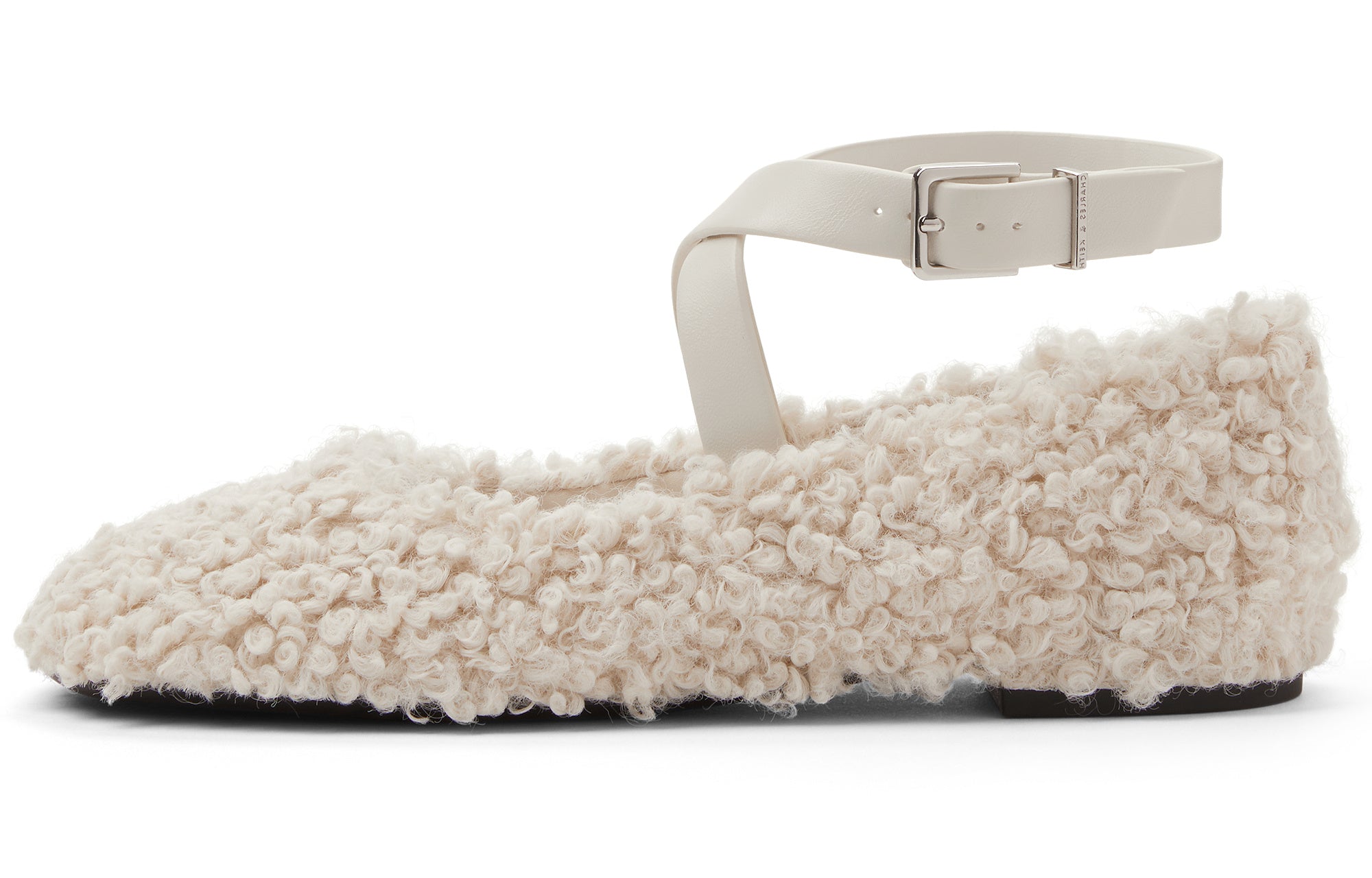 Повседневные балетки с ремешком на щиколотке и плюшевой отделкой от Charles & Keith. Модель на плоской подошве 0,5 см сочетает...