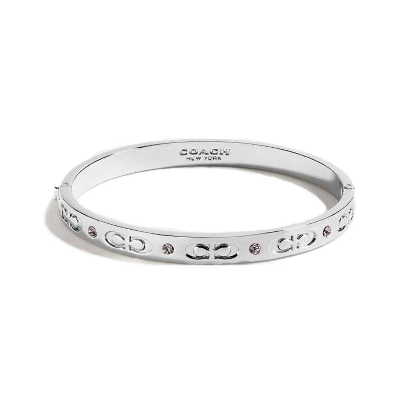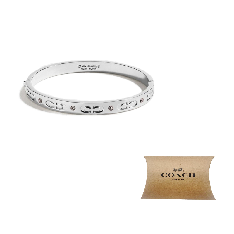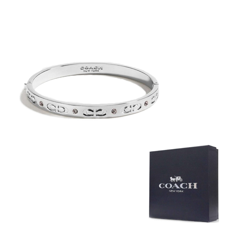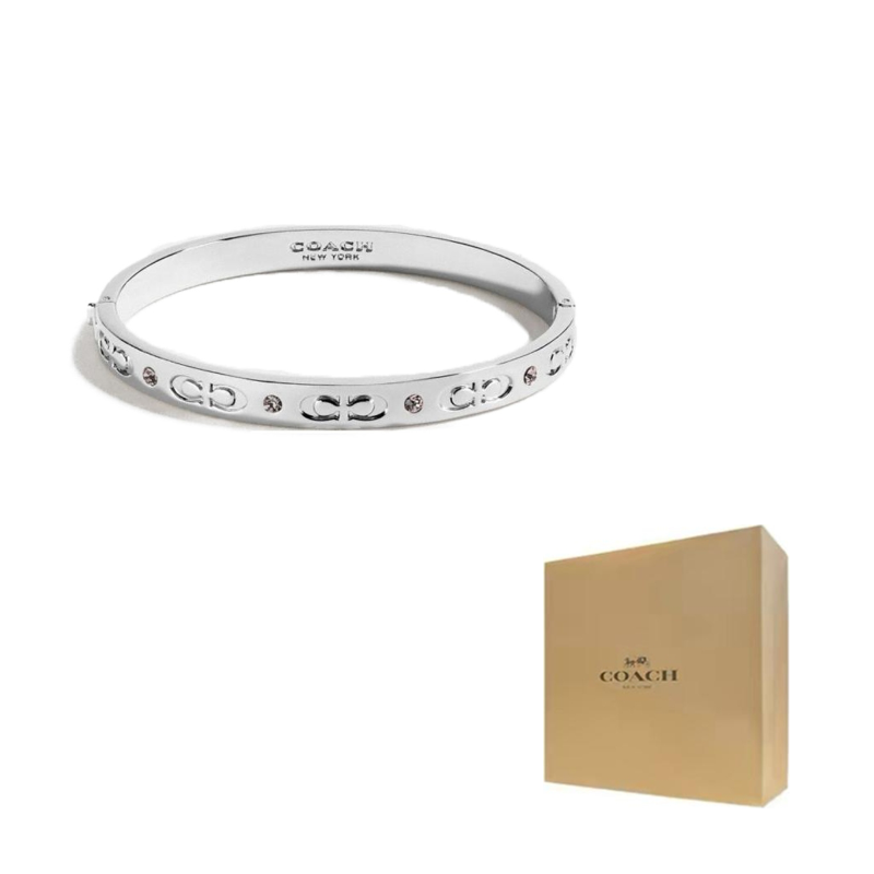 Браслет Coach с двойным логотипом "C" и украшением в виде алмаза, выполненный из латуни с серебряным покрытием. Элегантная парная модель,...