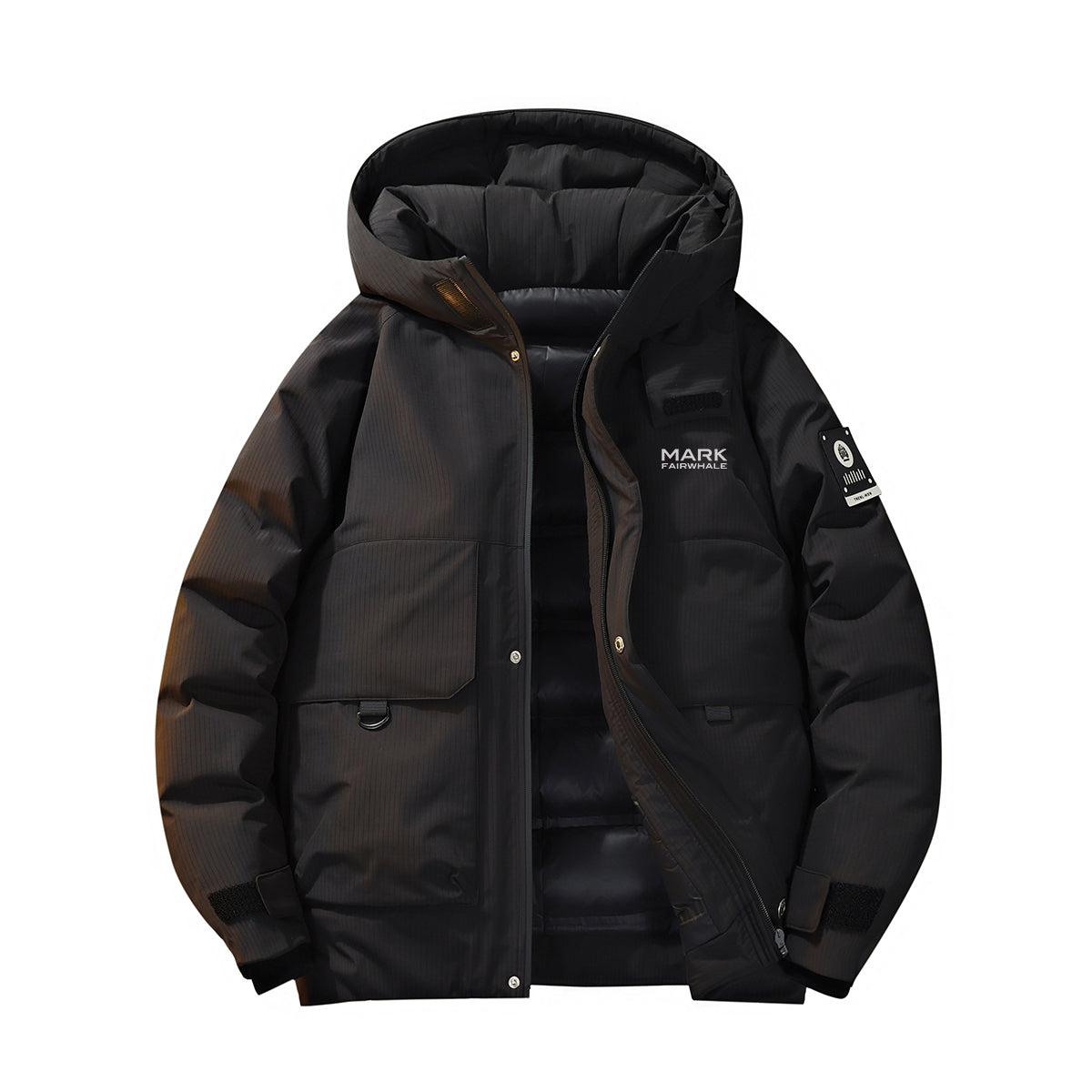 Пуховик в стиле «пуховик» с капюшоном для активного отдыха и города, выполненный из водоотталкивающей ткани. Модель свободного кроя наполнена белым...