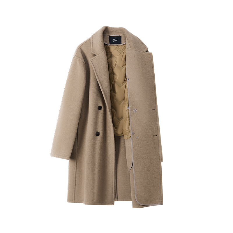 Мужская средняя длины модель с длинными рукавами и двубортной застёжкой на пуговицы, выполнена из шерсти с полиэстеровой подкладкой. Прямой крой...