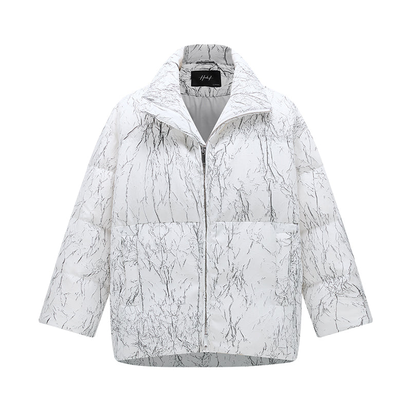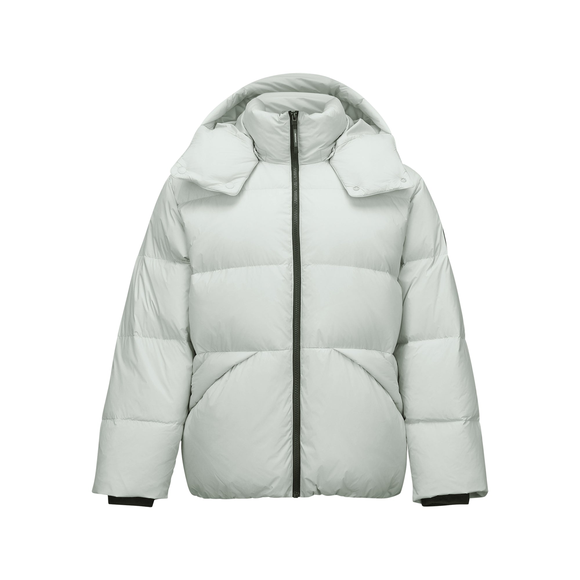 Пуховик с высоким воротником и наполнителем из белого утиного пуха обеспечивает тепло и защиту от ветра. Модель свободного кроя с...