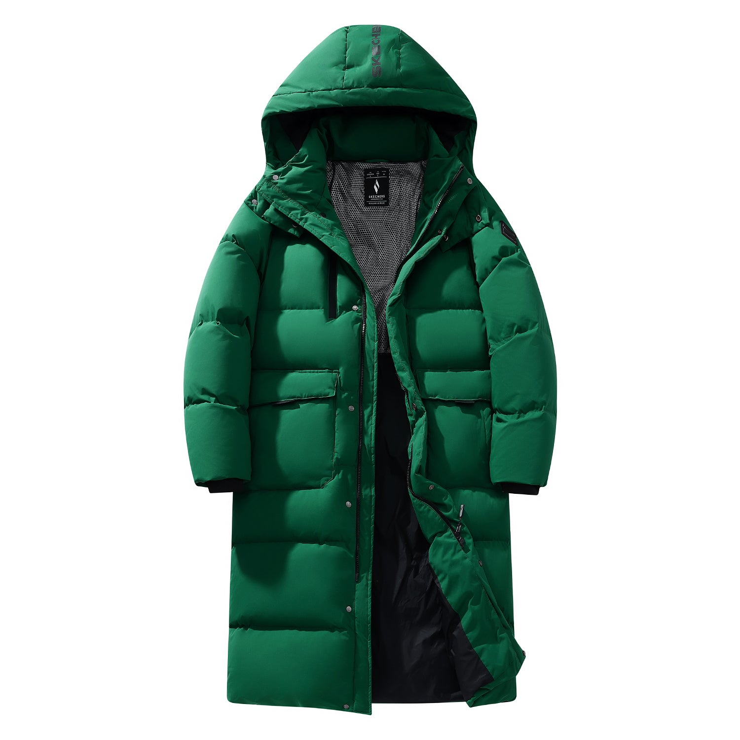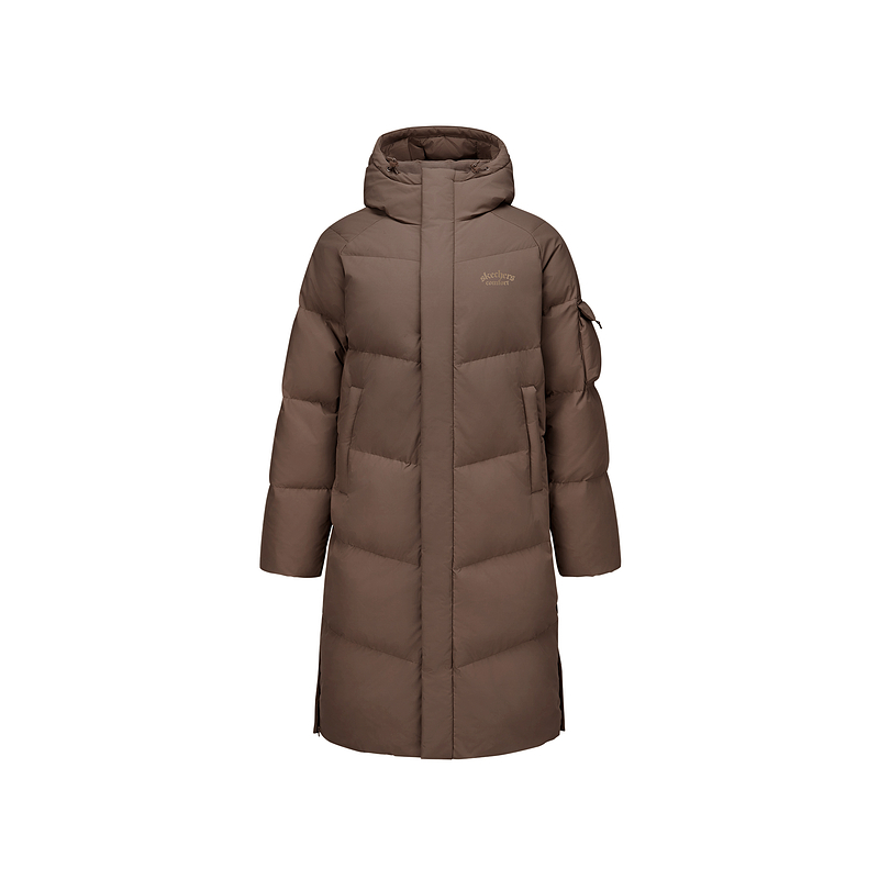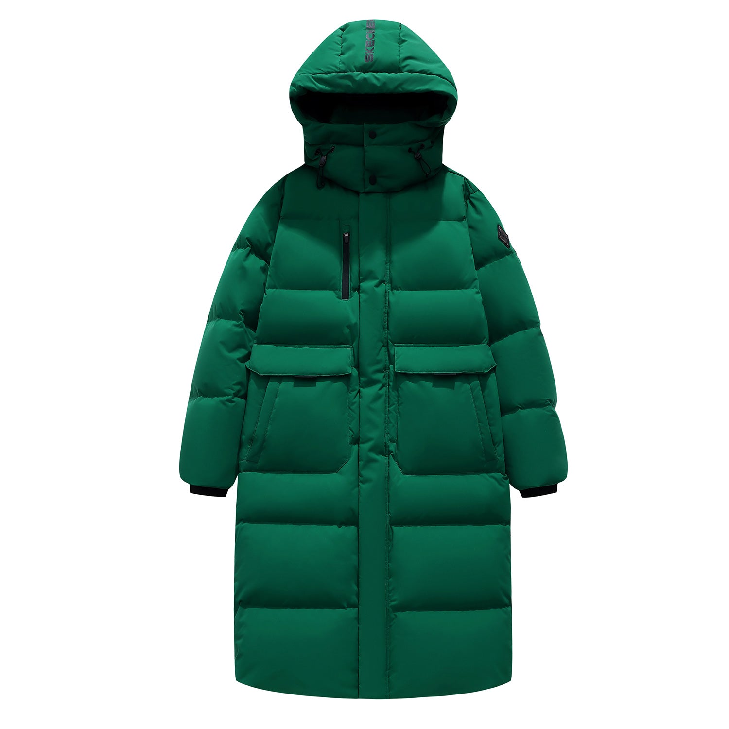 Женский длинный пуховик с капюшоном и наполнителем из утиных пуха обеспечивает тепло и защиту от холода. Модель свободного кроя с...