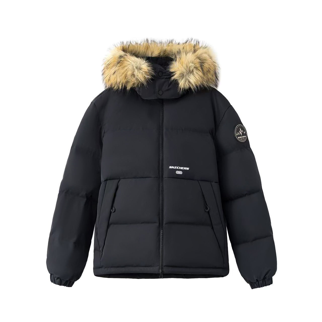 Пуховик с меховым воротником и наполнителем из белого утиного пуха обеспечивает тепло и комфорт. Модель выполнена в классическом свободном крое...