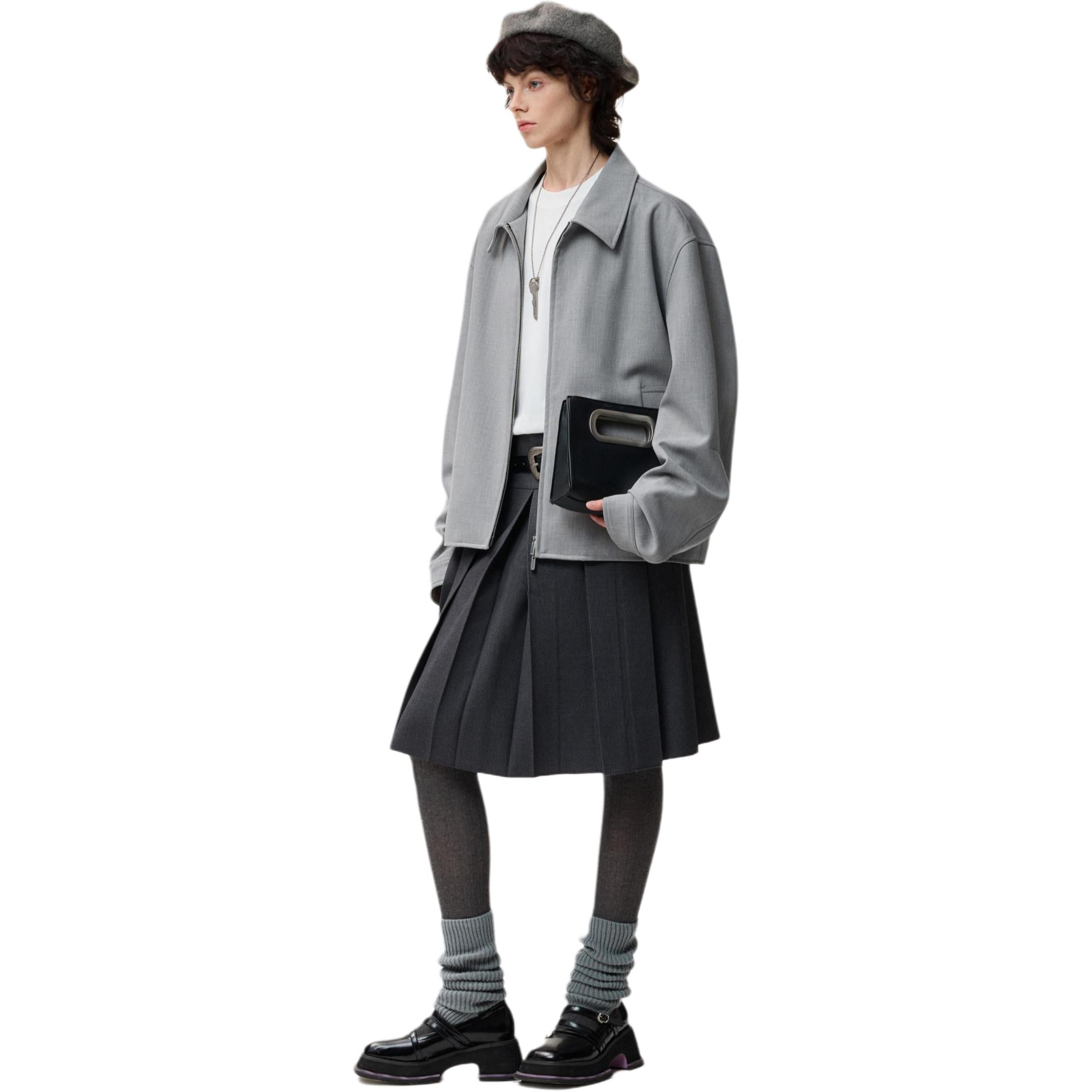 Короткая куртка свободного кроя в стиле ретро и уличной моды с отложным воротником, молнией и удлиненными плечами. Модель из прочной...
