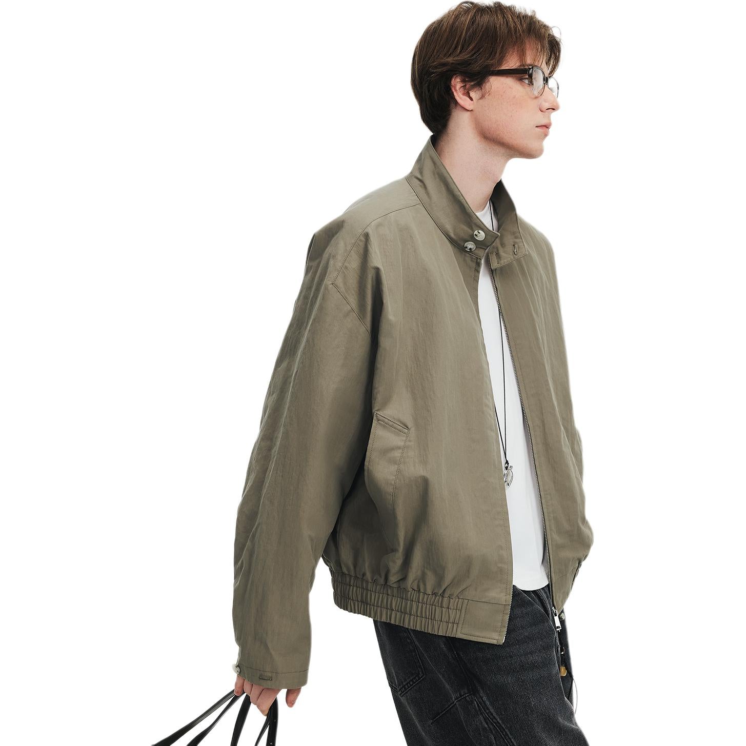 Свободная куртка в стиле «Харрингтон» с воротником-стойкой и ретро-дизайном из фактурной ткани со складками. Модель на молнии с цельнокроеными рукавами...