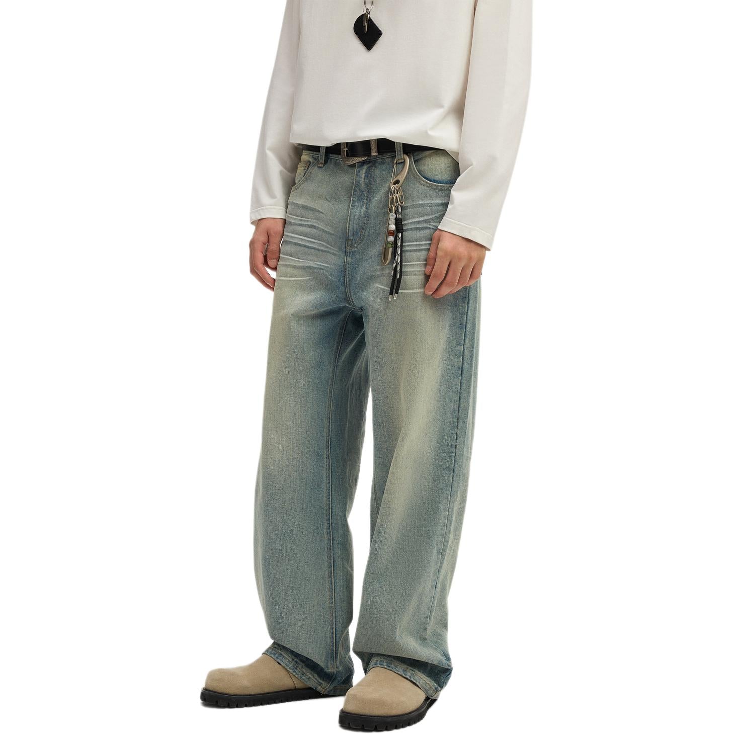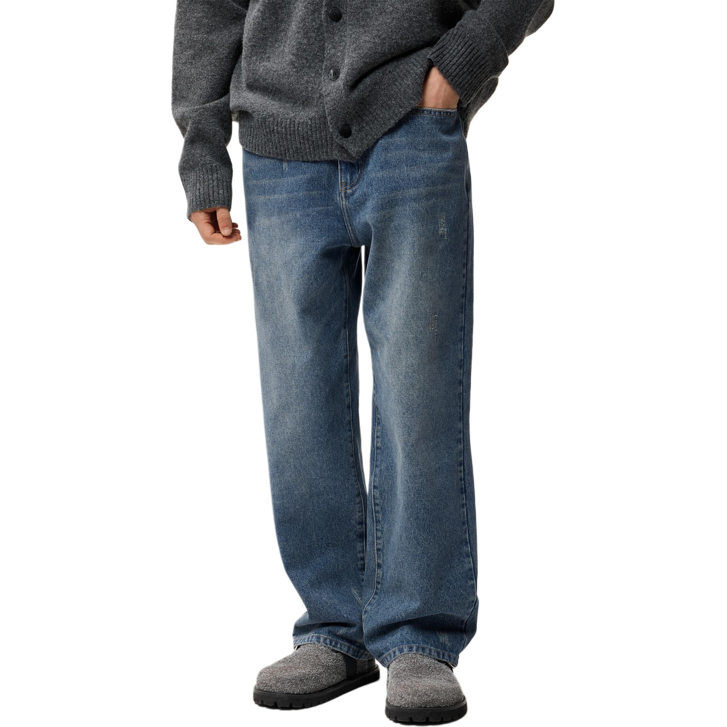 Свободные джинсы прямого кроя в американском уличном стиле с эффектом поношенности, стирки и объёмными «усами». Модель средней посадки на молнии...
