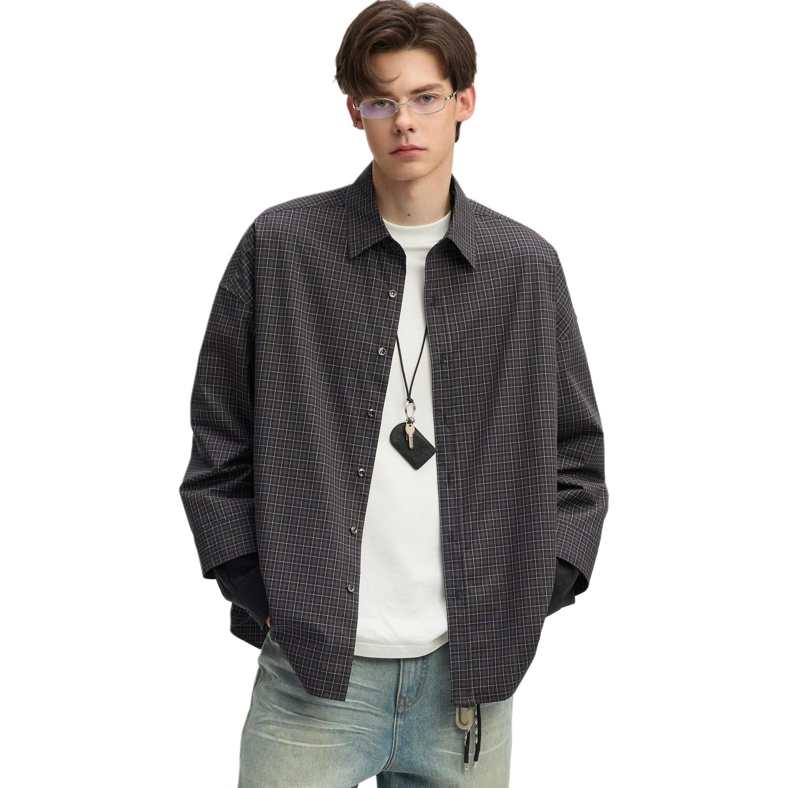 Мужская рубашка lilbetter CLEANFIT с длинными рукавами и классическим отложным воротником. Модель свободного кроя с эффектом «двойной рубашки» выполнена из...