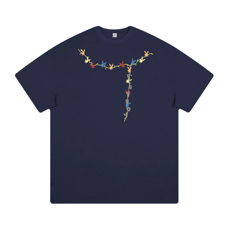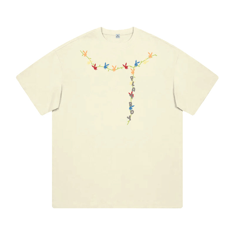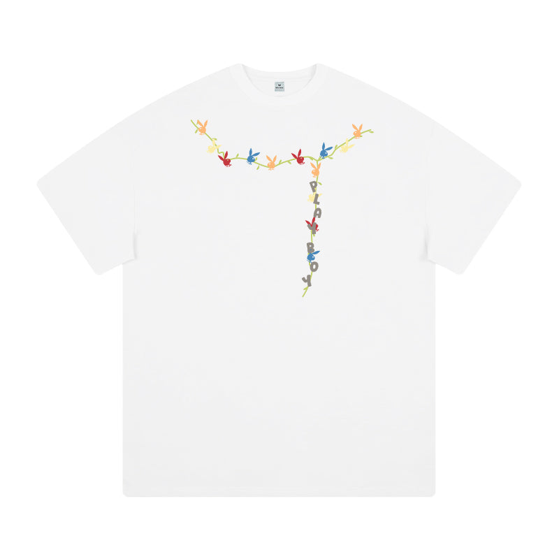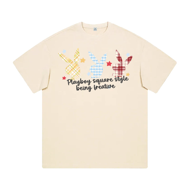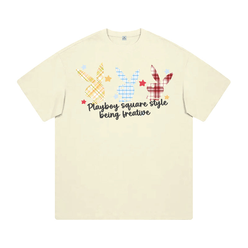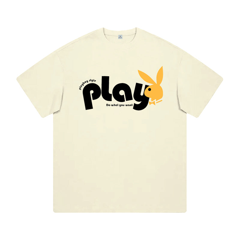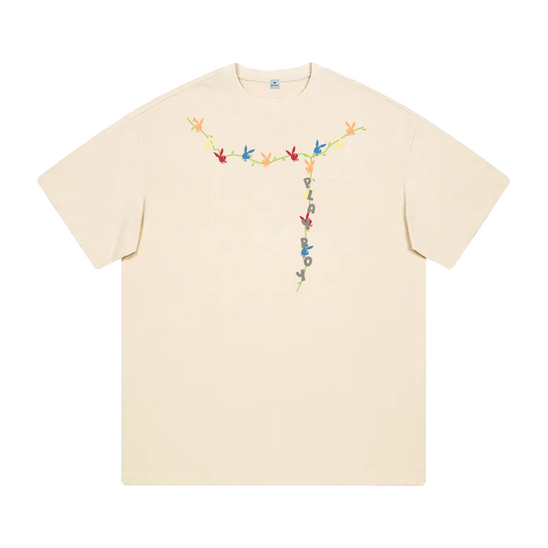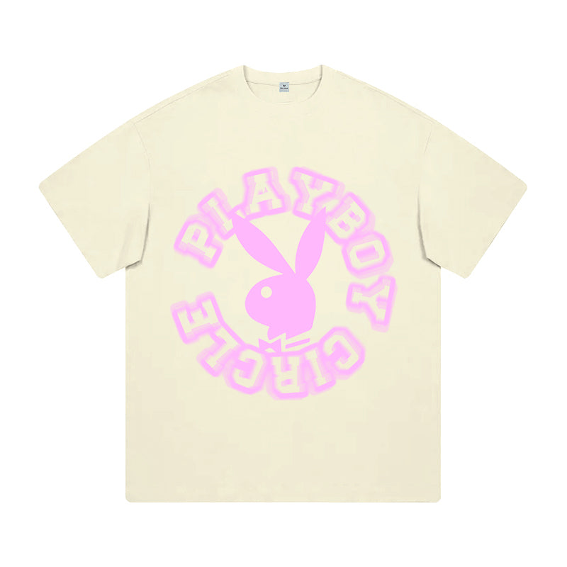 Футболка Playboy с короткими рукавами и круглым вырезом, украшенная принтом с зайцем на спине. Свободная и лёгкая модель обеспечивает комфорт...