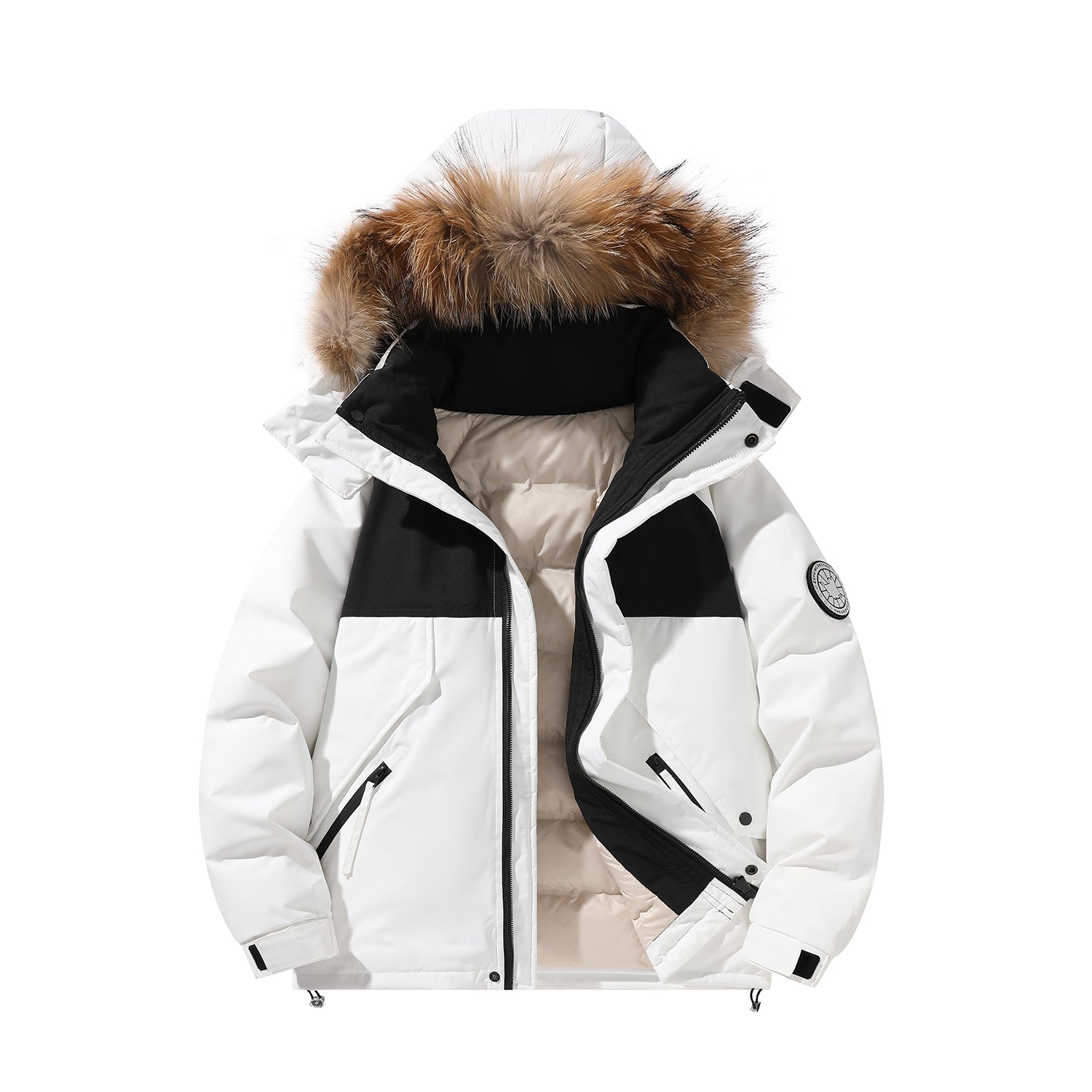 Просторный пуховик-парка в стиле барн-коат с капюшоном, съёмным меховым воротником и цельнокроеными рукавами, предназначенный для экстремально холодных условий. Модель наполнена...