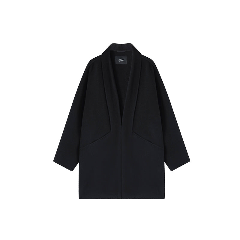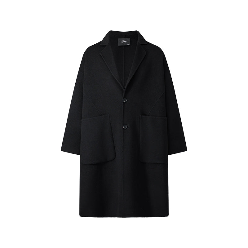 Мужское пальто из шерсти с однотонным дизайном и классическим воротником пиджакового типа. Идеально для осеннего сезона, сочетает стиль и тепло.
