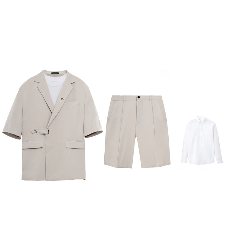 Элегантный летний костюм Pierre Cardin с изысканным узором нарцисса. Комплект состоит из короткой рубашки с отложным воротником и пуговицами, а также...