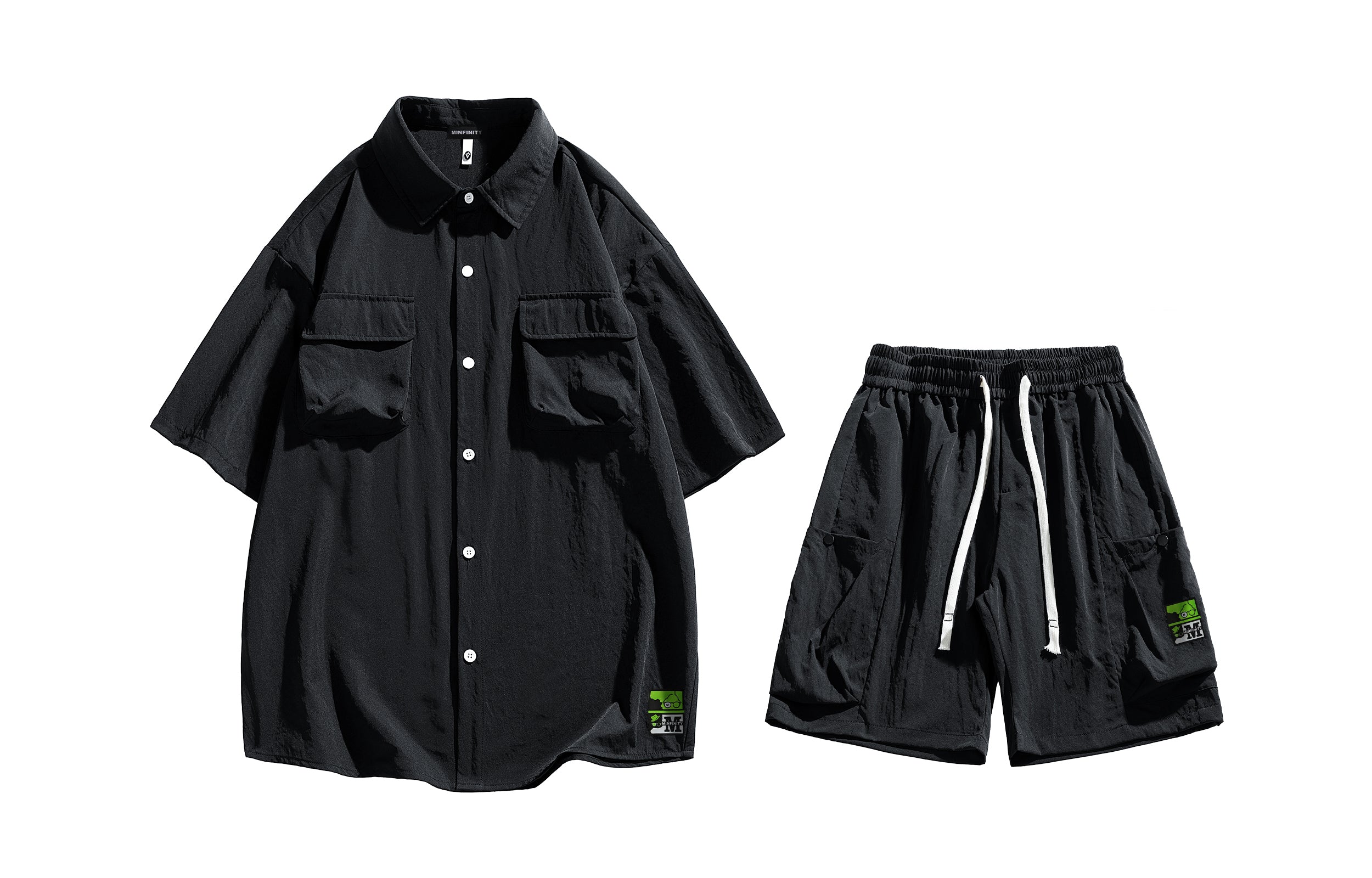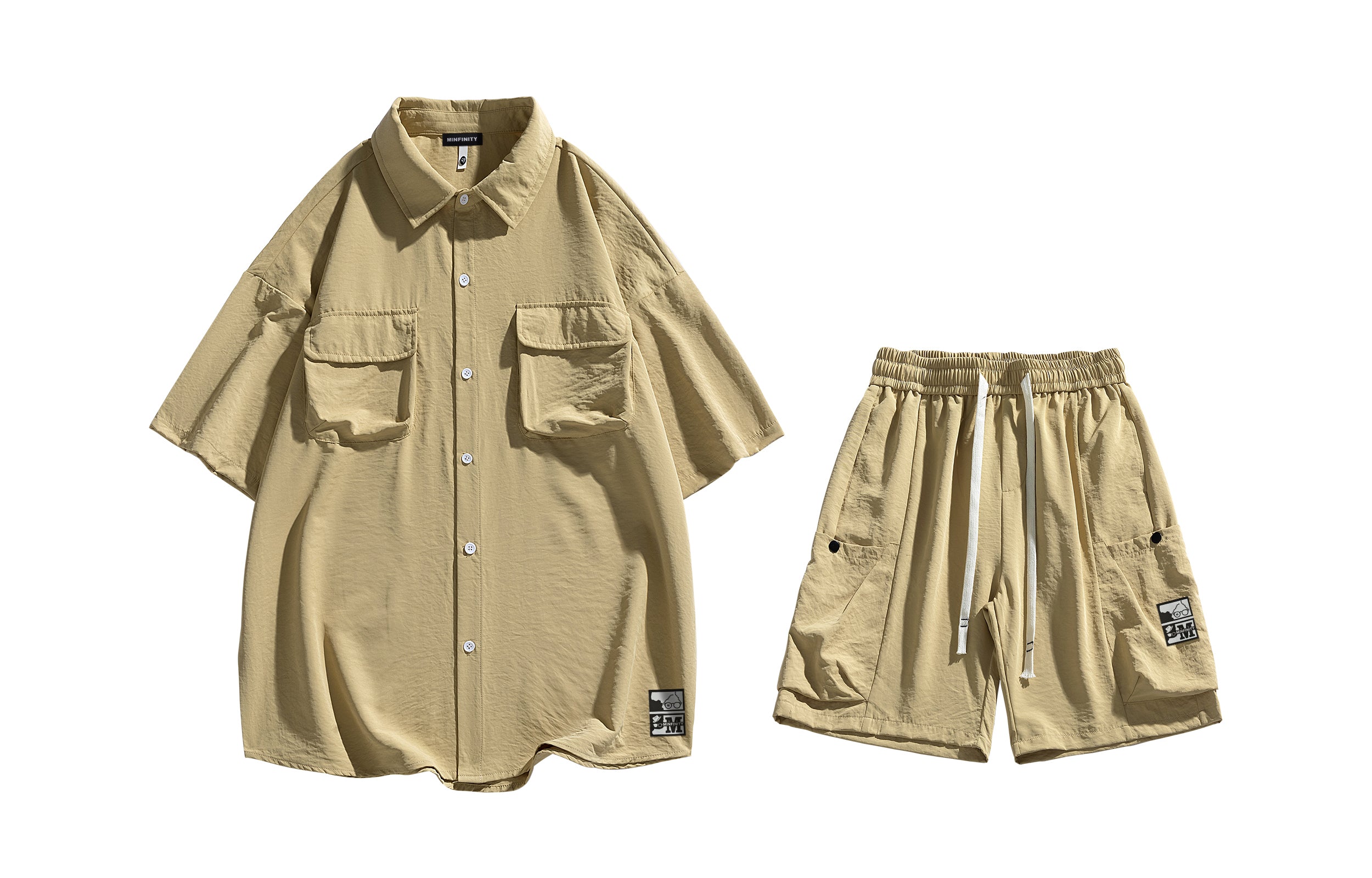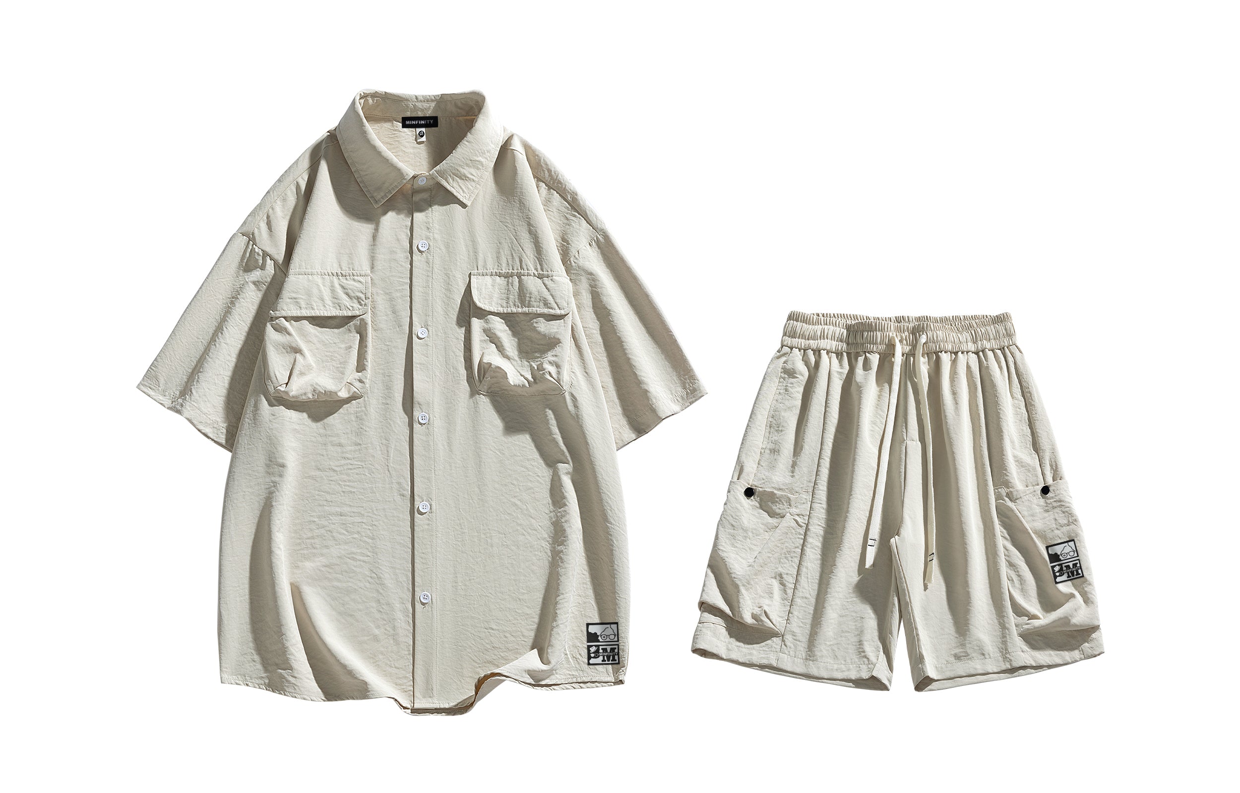 Повседневный костюм Minfinity в стиле «ретро спорт», состоящий из рубашки с коротким рукавом и шорт на резинке. Однотонный дизайн с...