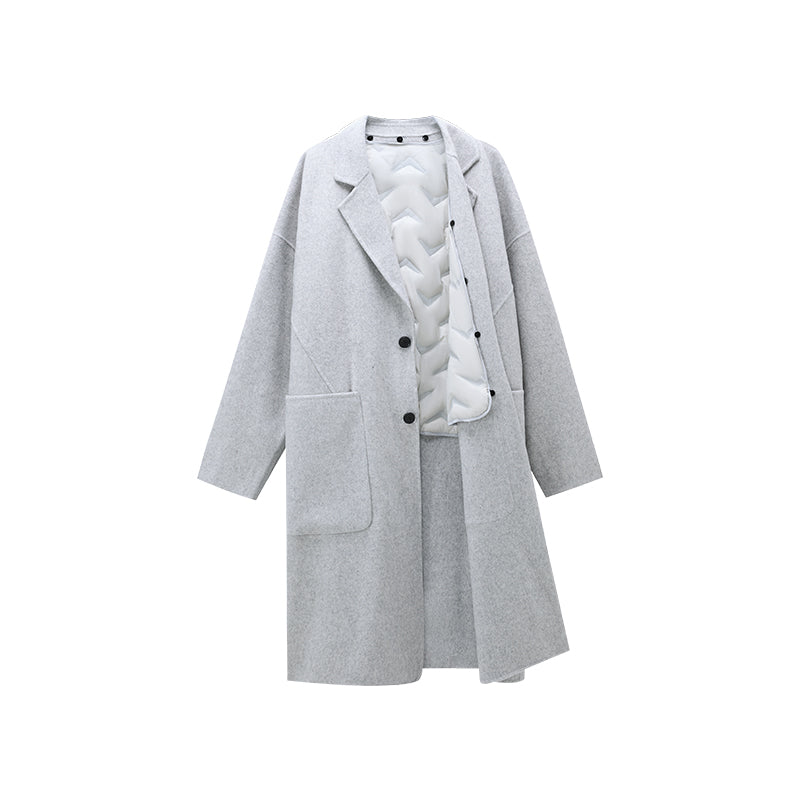 Двубортное шерстяное пальто с элегантным и простым дизайном для повседневной носки. Состав включает 47% шерсти, 42% полиэстера и 5% акрила,...