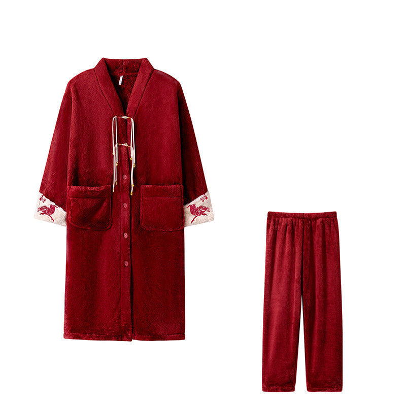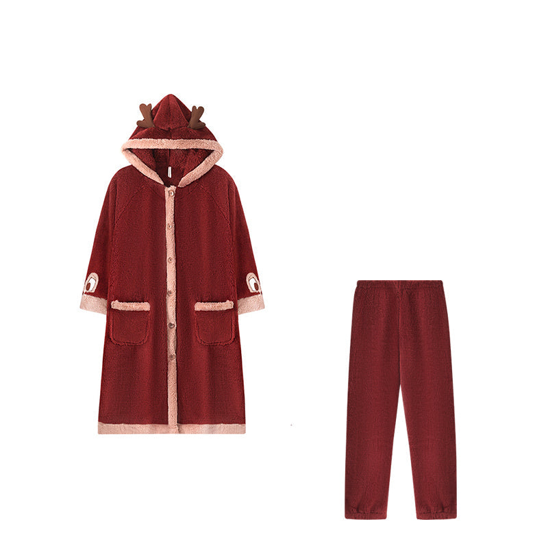 Утолщённый комплект для домашнего ношения, подходящий для празднований и зимнего отдыха. Эта модель создана для женщин, обеспечивая комфорт и тепло...