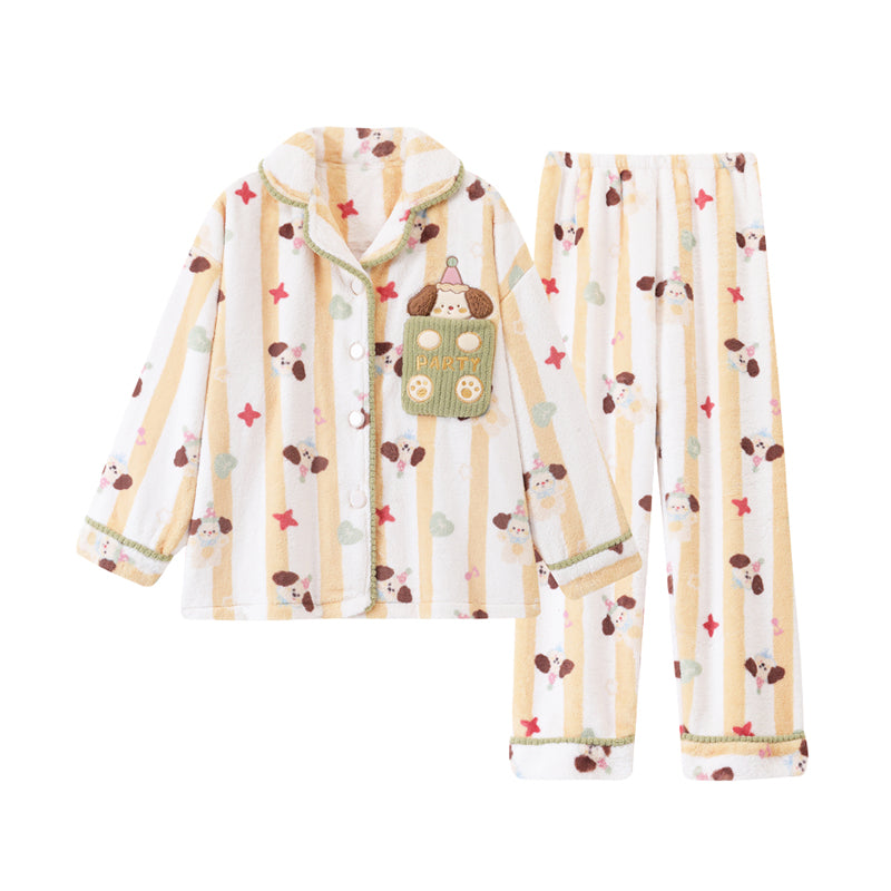 Мягкая и теплая пижама с длинными рукавами и V-образным вырезом из кораллового флиса с милым принтом собачки. Этот комплект обеспечивает...