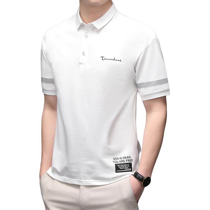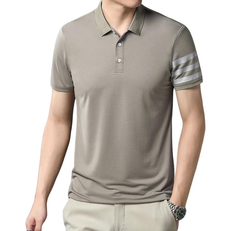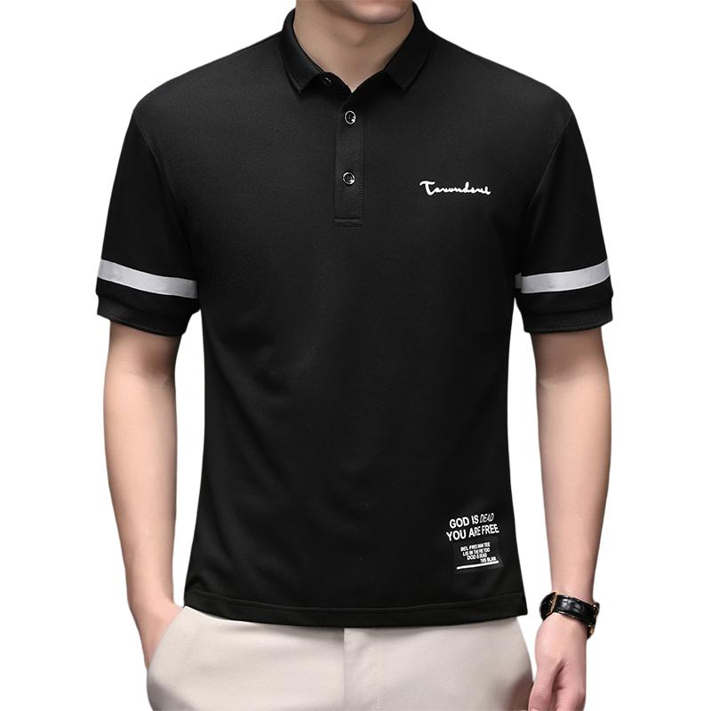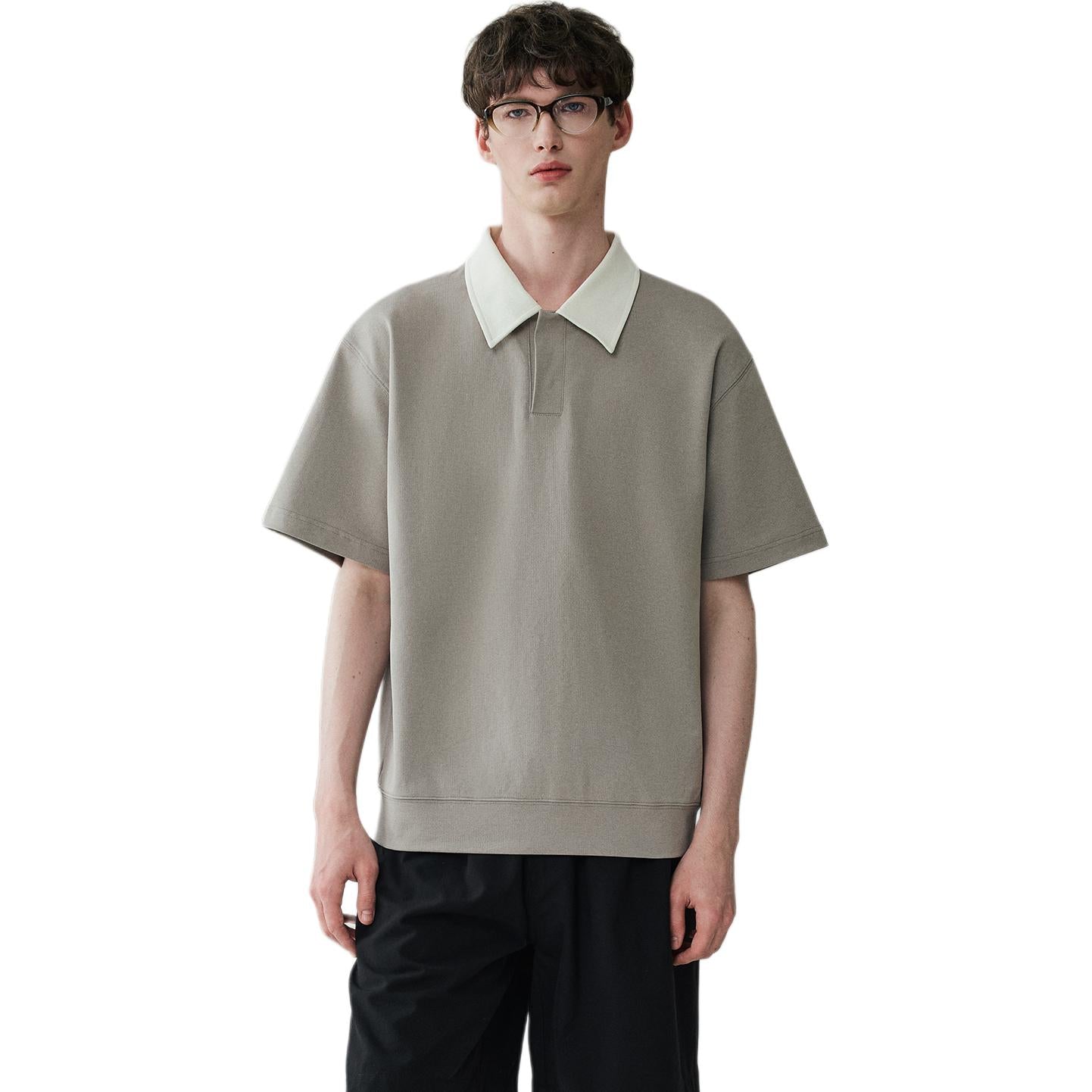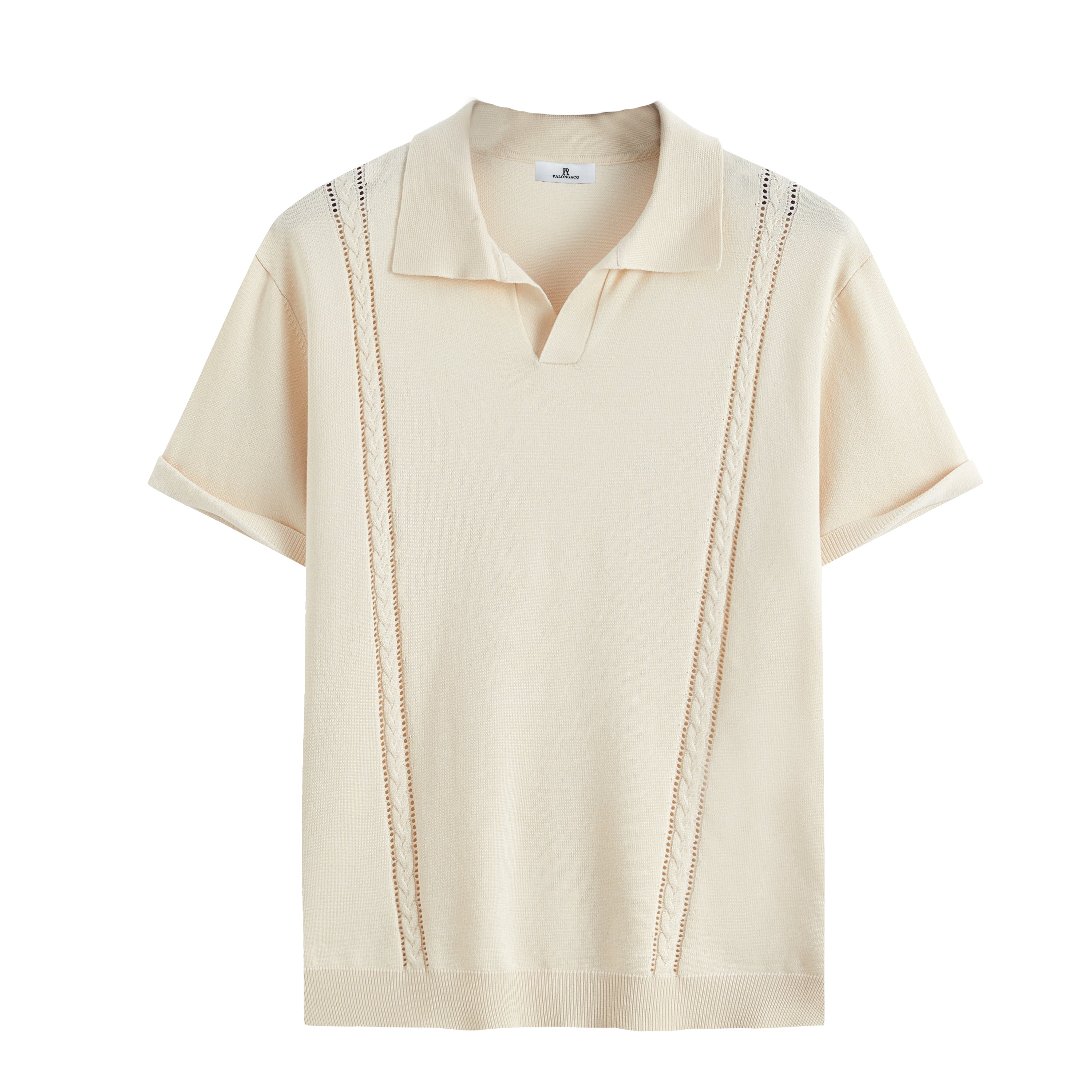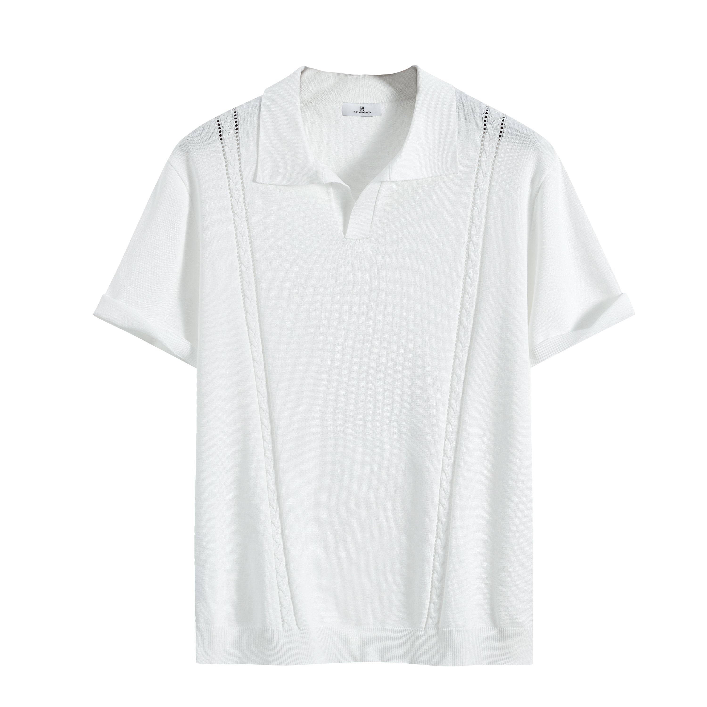 Мужское поло с V-образным вырезом и короткими рукавами, выполнено из трикотажа свободного кроя для комфорта и стильного повседневного образа.