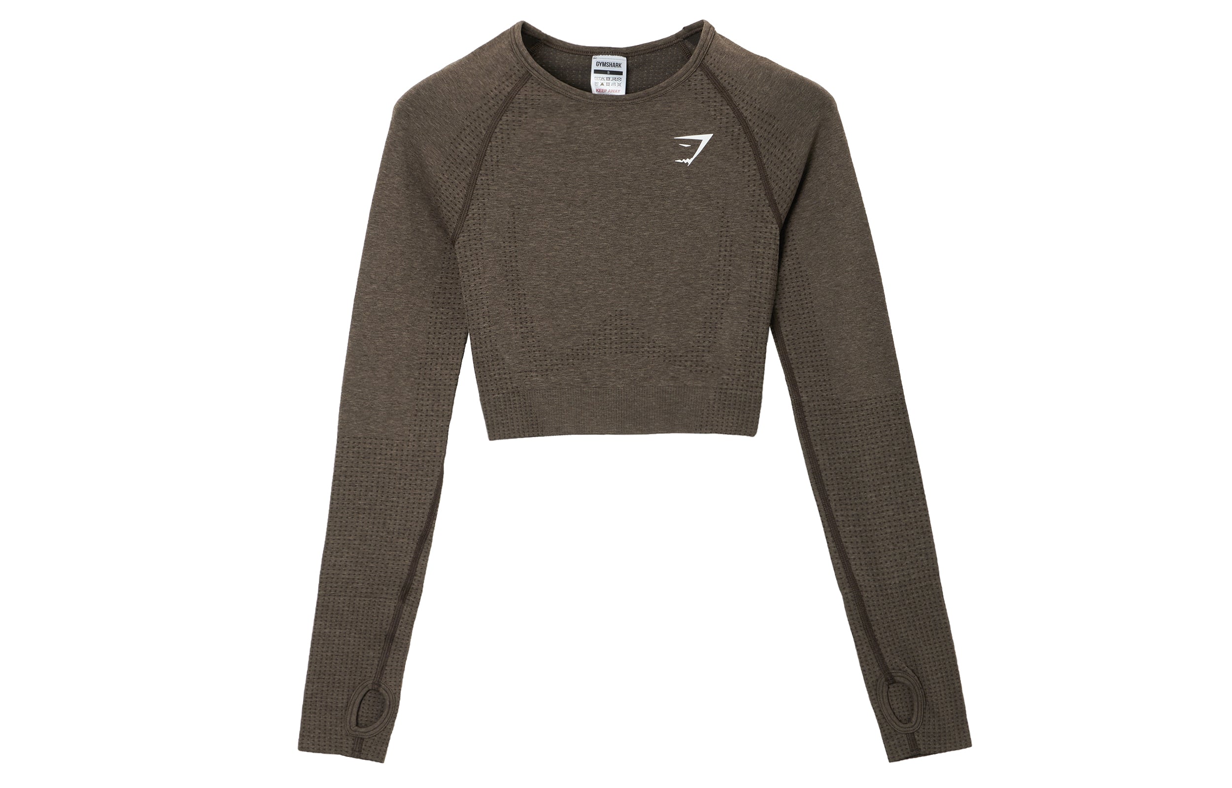 Женский спортивный лонгслив с длинными рукавами и короткой длиной, выполненный из мягкой и дышащей бесшовной ткани с маленьким логотипом. Модель...