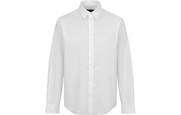 Рубашка свободного кроя с воротником-стойкой и заниженной линией плеча, выполненная из дышащего хлопка. Модель с застежкой на пуговицах представляет собой...