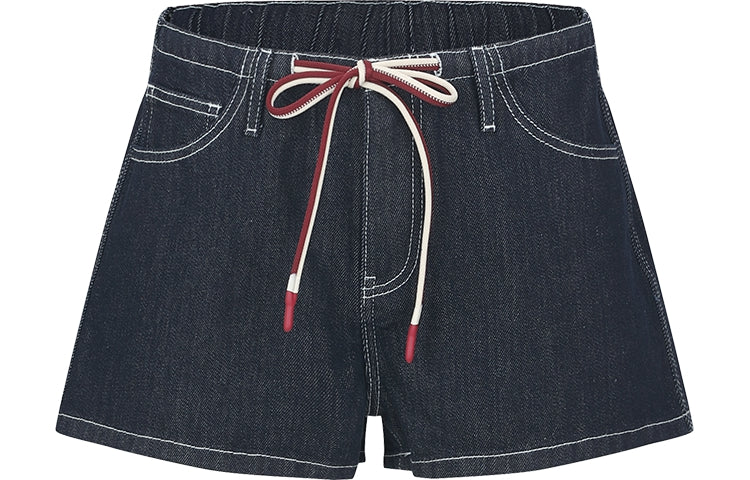 Облегающие джинсовые шорты с комбинированной отделкой, поясом на шнурке и карманами из полиэстера. Универсальная и стильная модель длиной до середины...