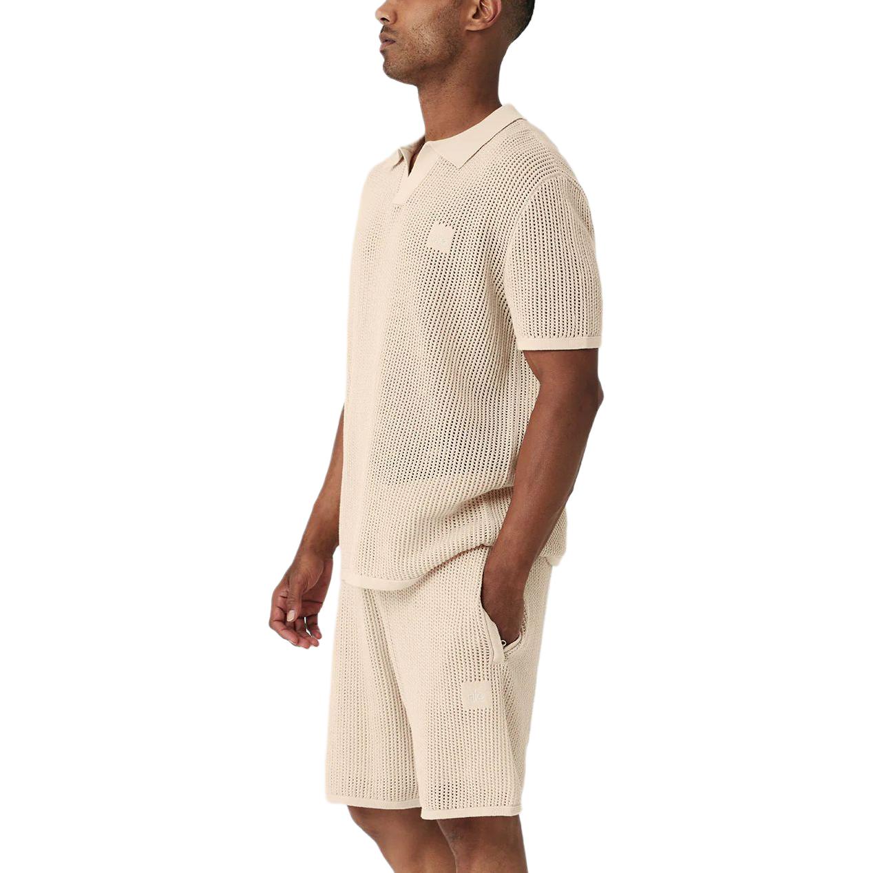 Мужское поло с V-образным вырезом и короткими рукавами, выполнено из трикотажа свободного кроя для комфорта и стильного повседневного образа.