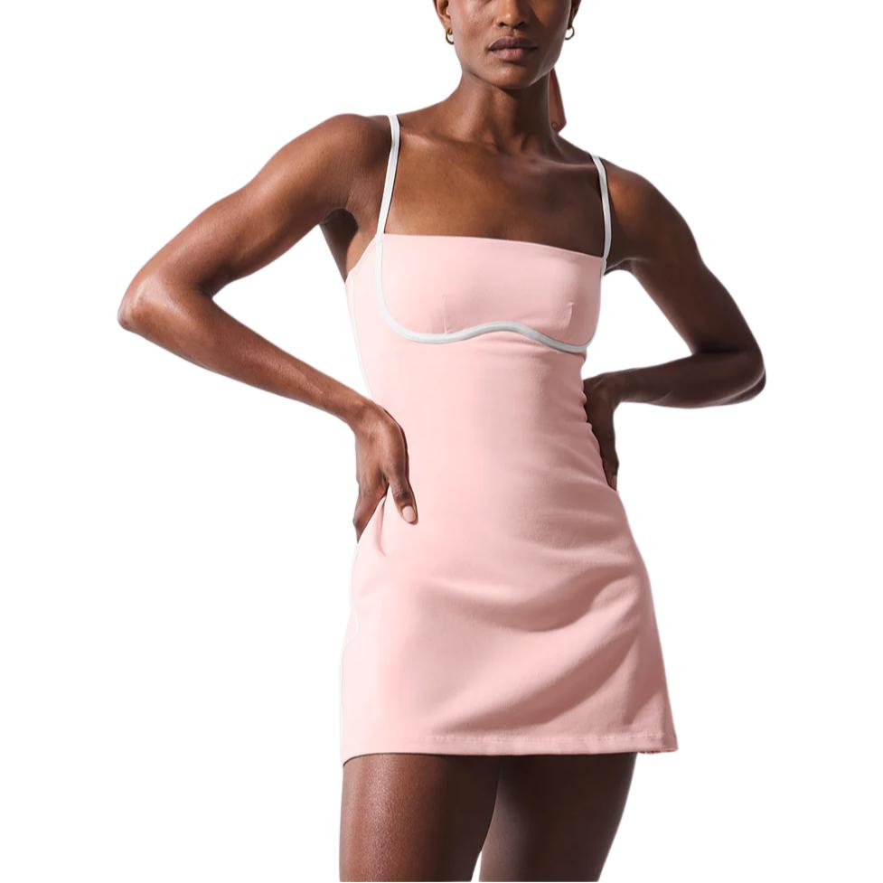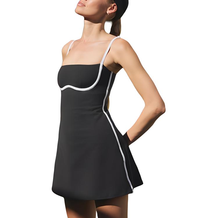 Короткое спортивное платье с контрастной отделкой и встроенными шортами, выполнено из дышащего эластичного материала для комфорта во время занятий теннисом и активного отдыха.