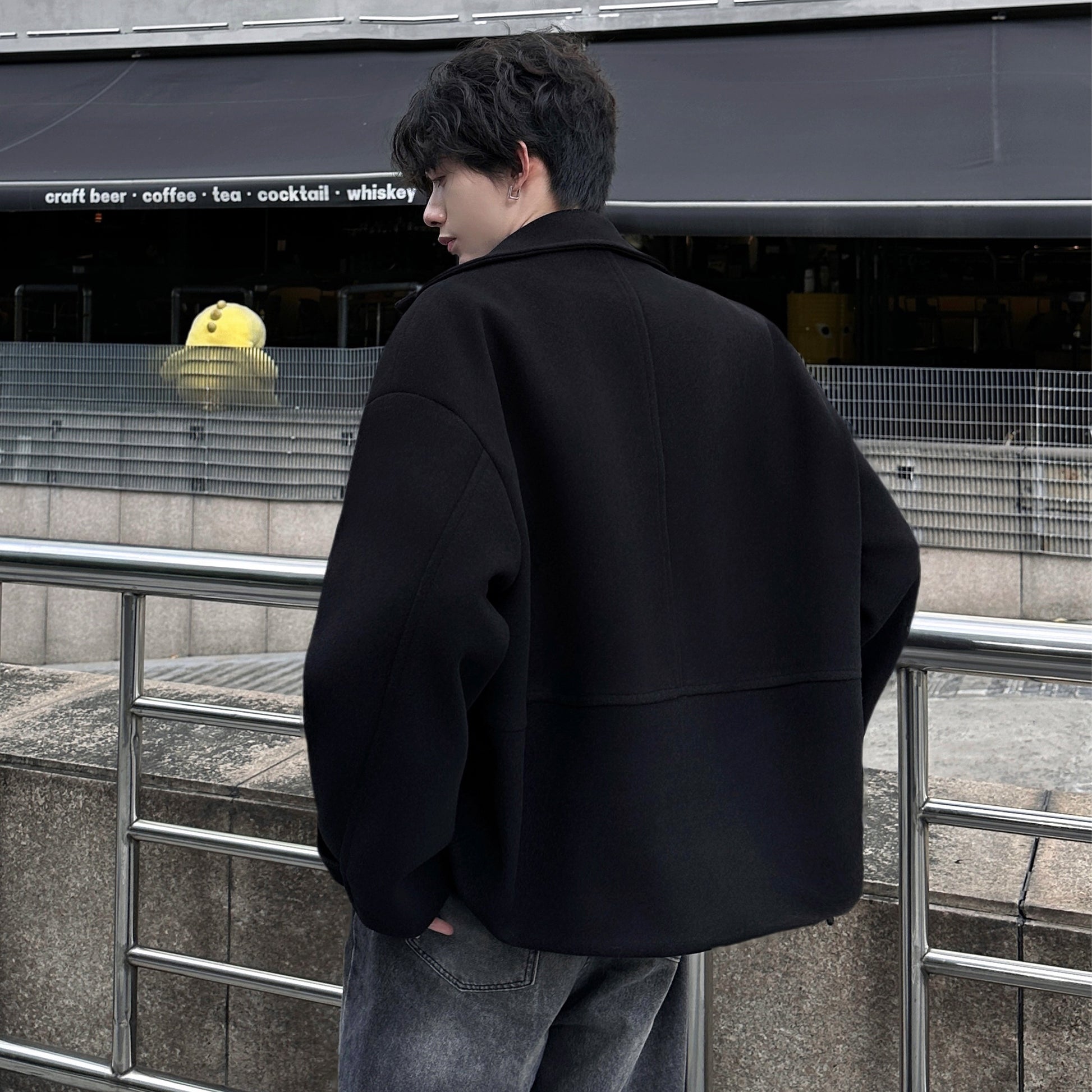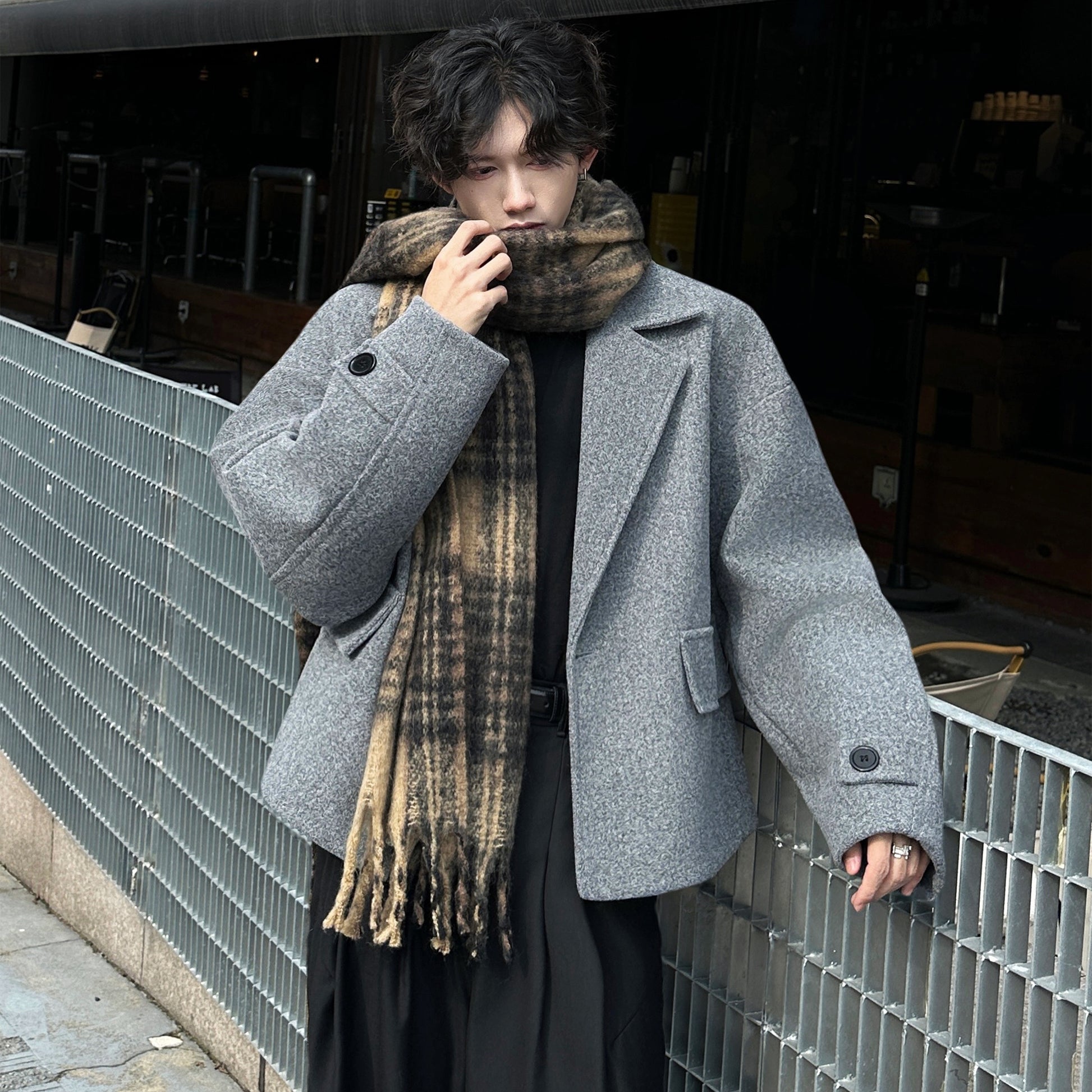 Короткое мужское пальто в английском стиле с однобортной застёжкой, прямым кроем и классическим лацканом. Универсальная модель для осени и зимы, выполненная из прочной ткани.