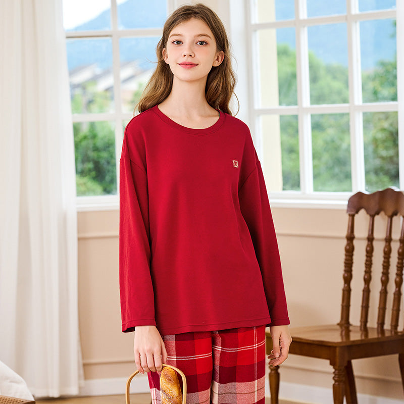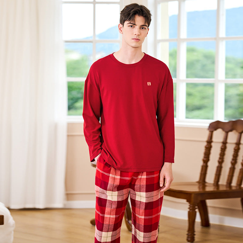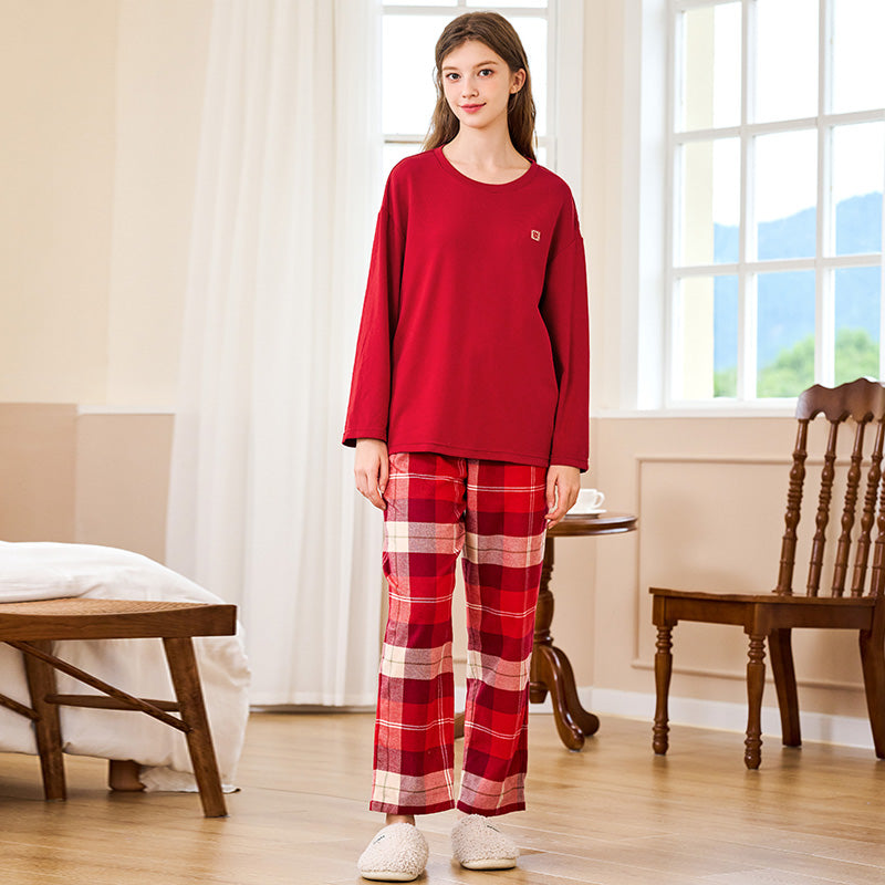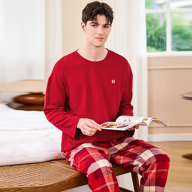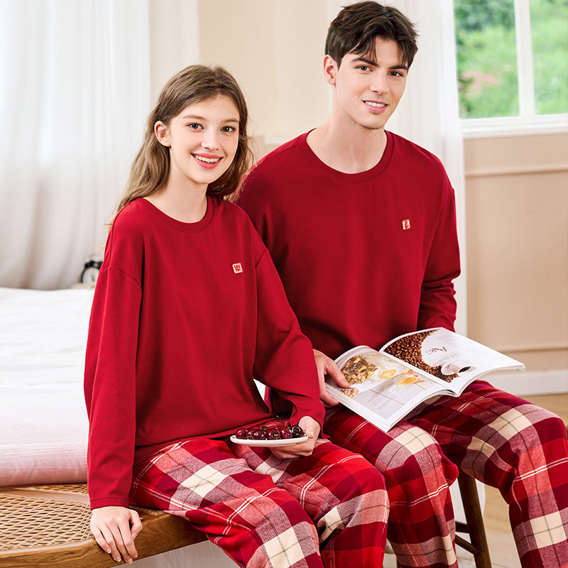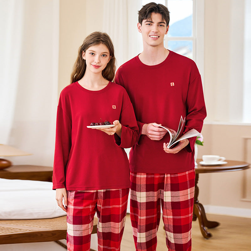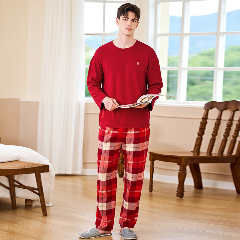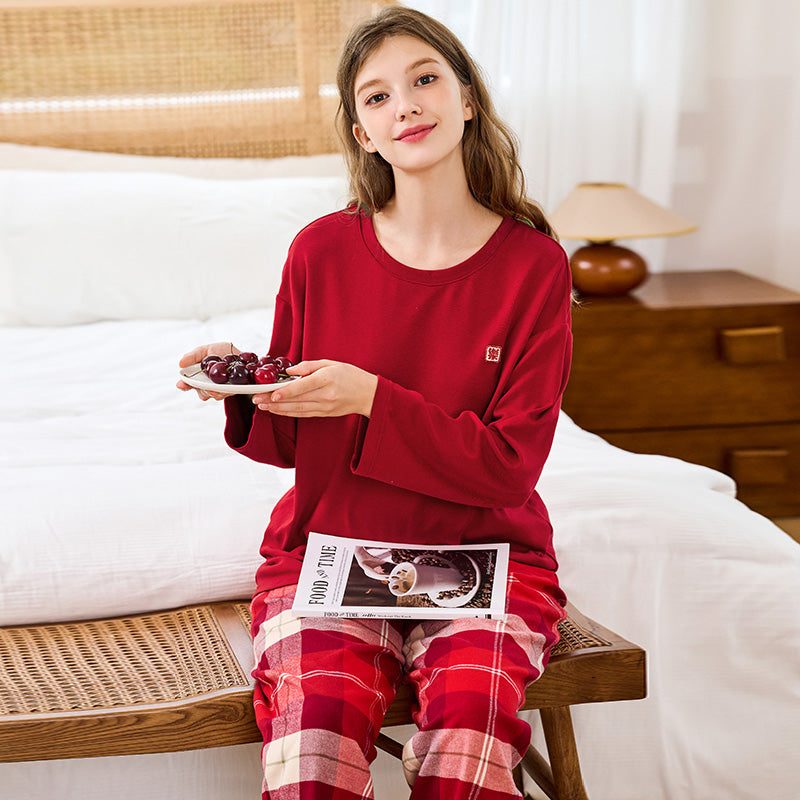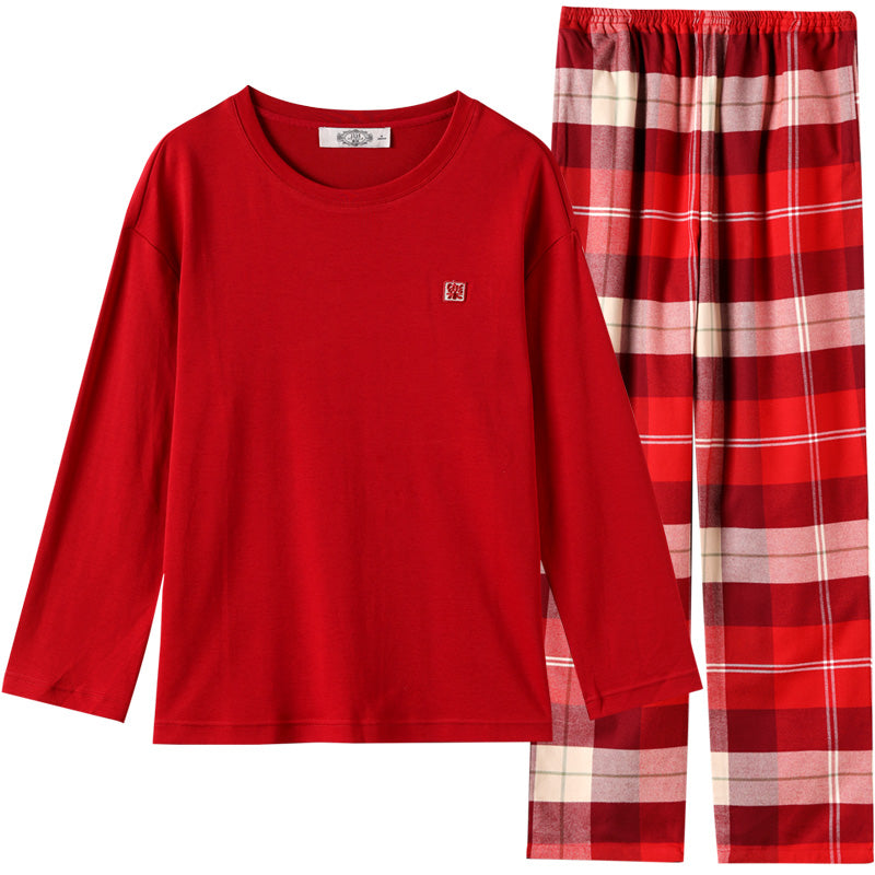 Домашний комплект с длинными рукавами из 100% хлопка, с круглым вырезом и мягкой тканью для комфортного ношения. Подходит для весны, лета и зимы.