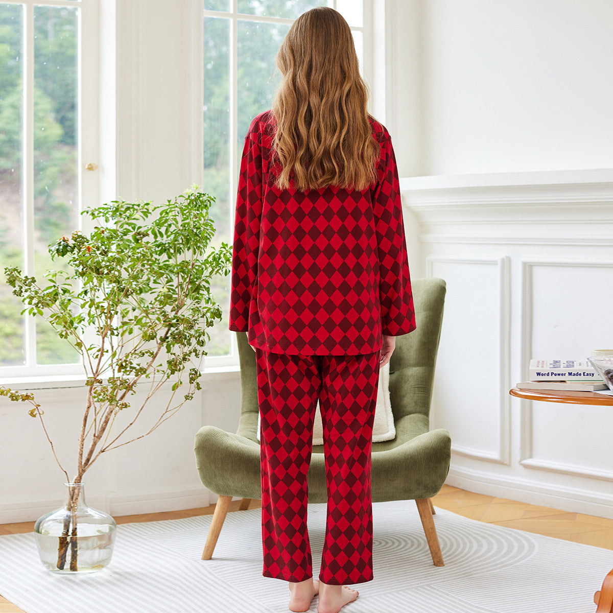 Мягкий и теплый комплект для дома с длинными рукавами и лацканом, выполненный из бархатистого материала, идеально подходит для зимних холодных вечеров.