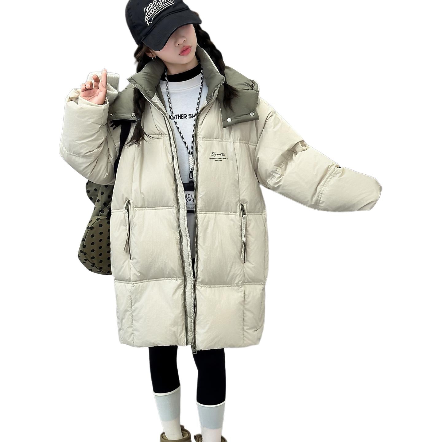Длинный детский пуховик с несъемным капюшоном, наполненный белым утиным пухом высокой очистки. Модель свободного кроя обеспечивает надежное тепло и комфорт для холодного времени года.