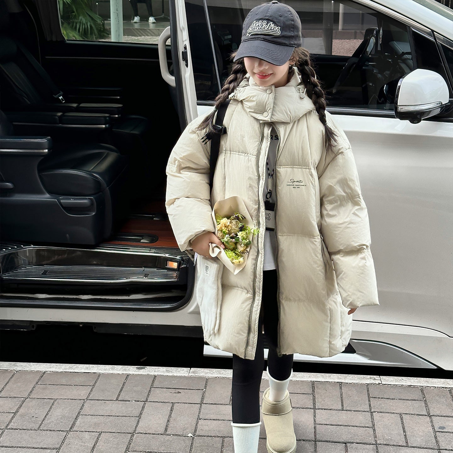 Состав: верхняя ткань — полиэстер, утеплитель — белый утиный пух (содержание пушинок 90%).