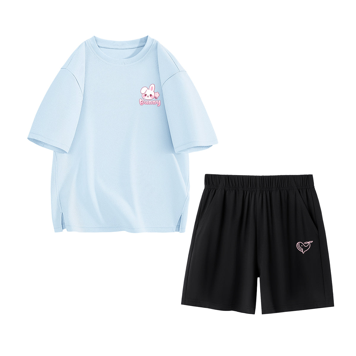 Лёгкий летний комплект для девочек, состоящий из футболки с коротким рукавом и шорт с эластичной талией. Быстросохнущий и дышащий материал обеспечивает комфорт и свободу движений в жаркую погоду.