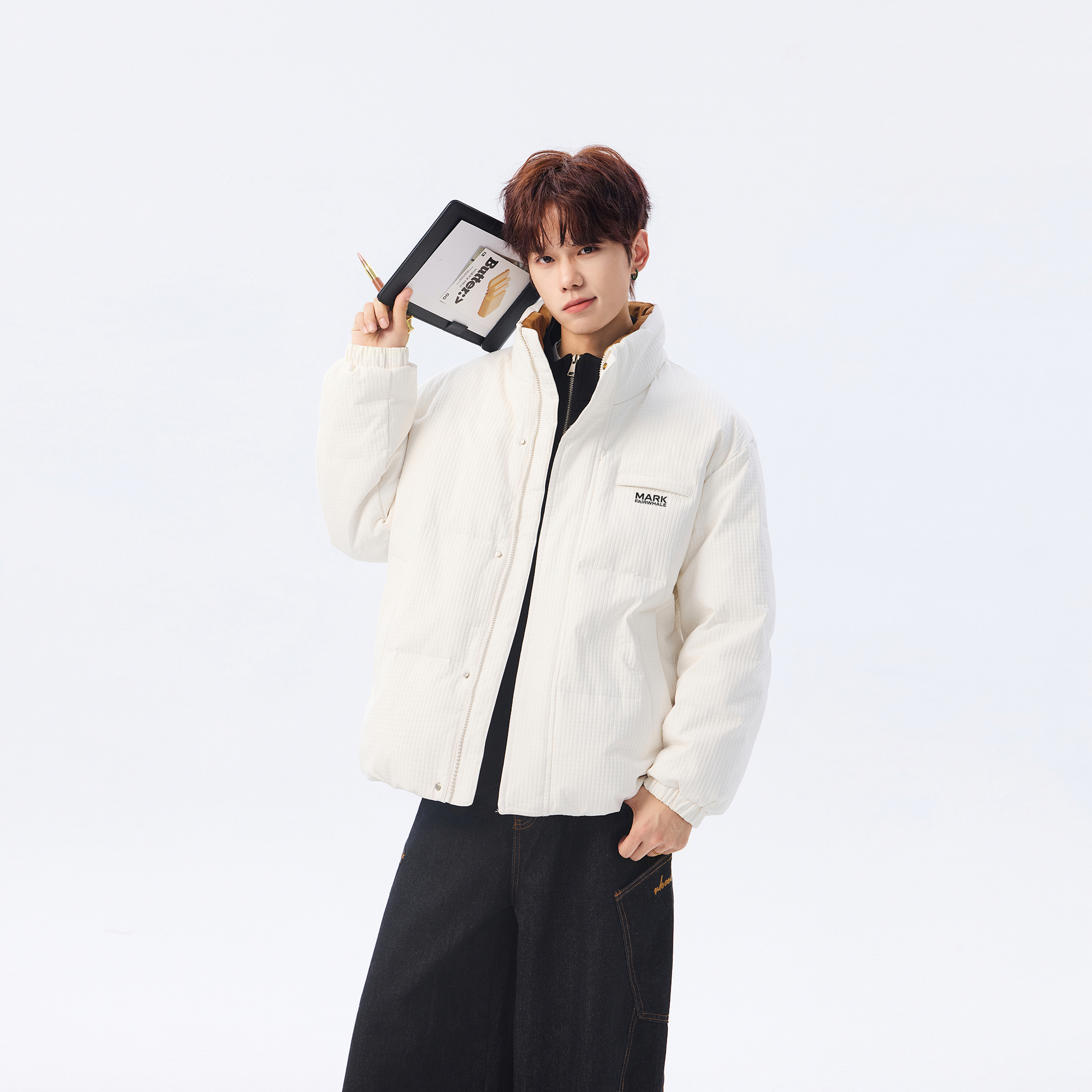 Пуховик в стиле «пуховик» с воротником-стойкой и логотипом бренда в американском ретро-стиле, наполненный утиным пухом высокой очистки. Модель свободного кроя из водоотталкивающей ткани обеспечивает тепло, легкость и подходит для городской носки.