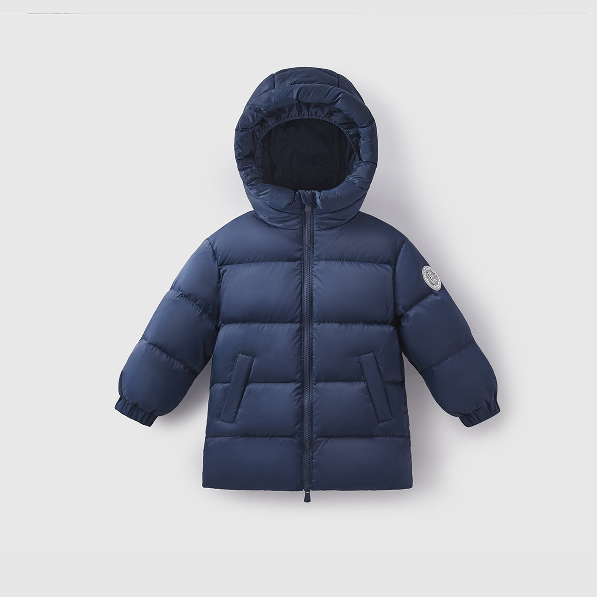 Средней длины зимний пуховик для мальчиков и девочек с защитой от влаги, ветра и бактерий. Подходит для зимних прогулок, катания на лыжах и активного отдыха.