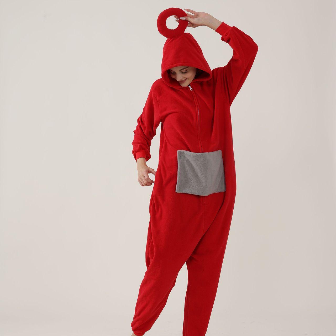 Пижама с капюшоном и длинными рукавами, мягкая и теплая. Выполнена в милом мультяшном стиле, подходит для домашнего отдыха и студенческих общежитий.