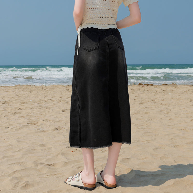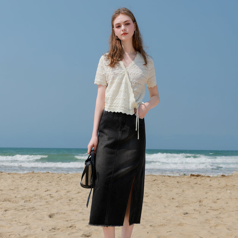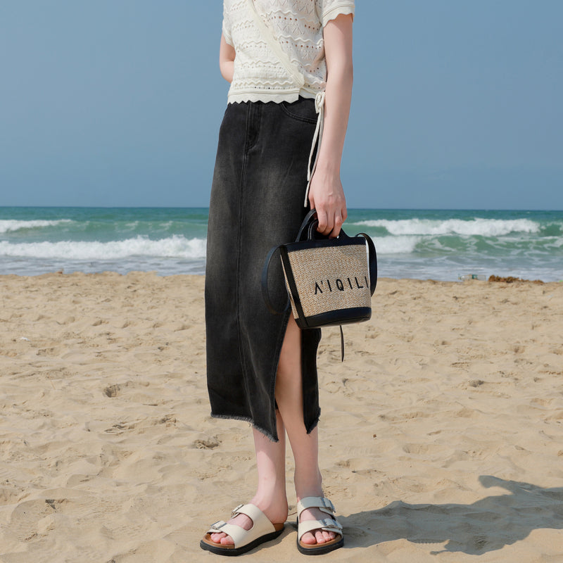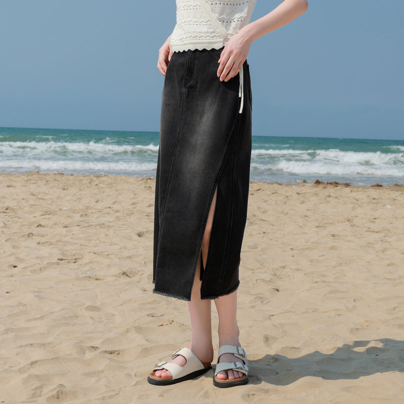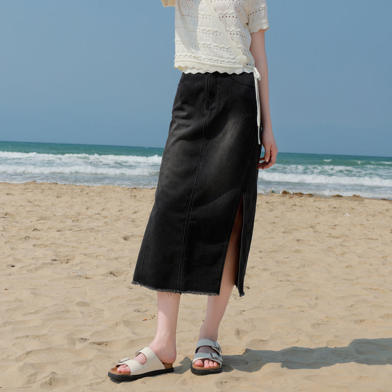 Винтажная длинная юбка с высокой талией и боковыми разрезами. Идеальна для повседневного ношения, создавая стильный и классический образ.