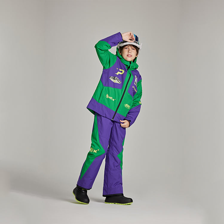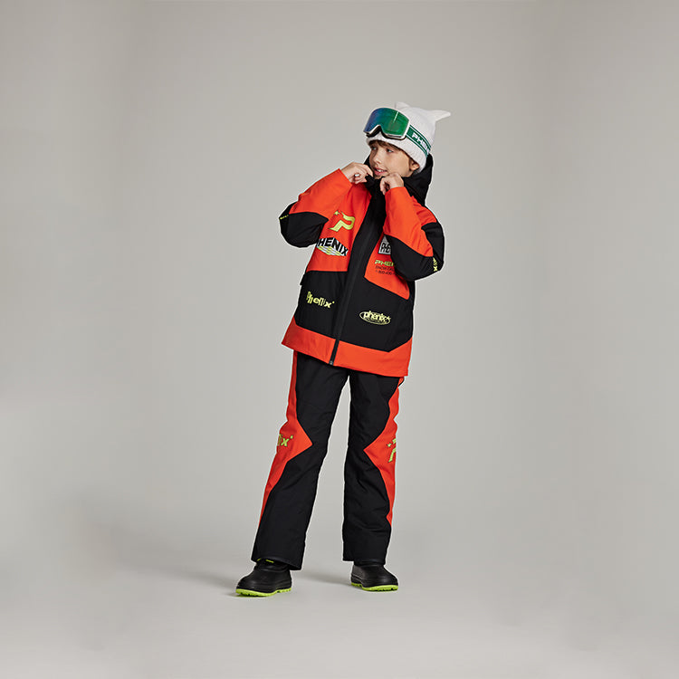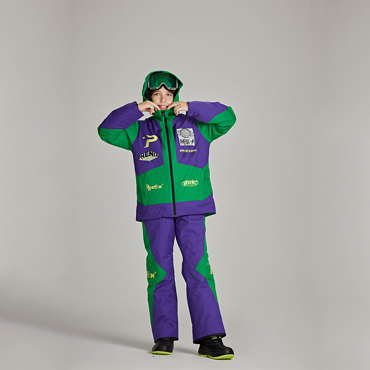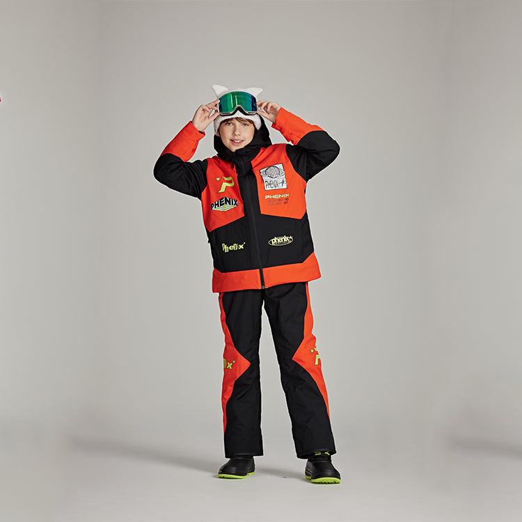 Тёплый горнолыжный костюм для детей Phenix SP27 с длинными рукавами, длинными брюками и свободным кроем, обеспечивает комфорт, тепло и защиту при катании на лыжах и активном зимнем отдыхе.