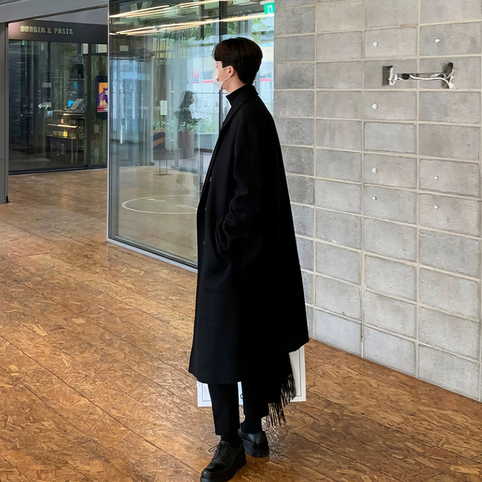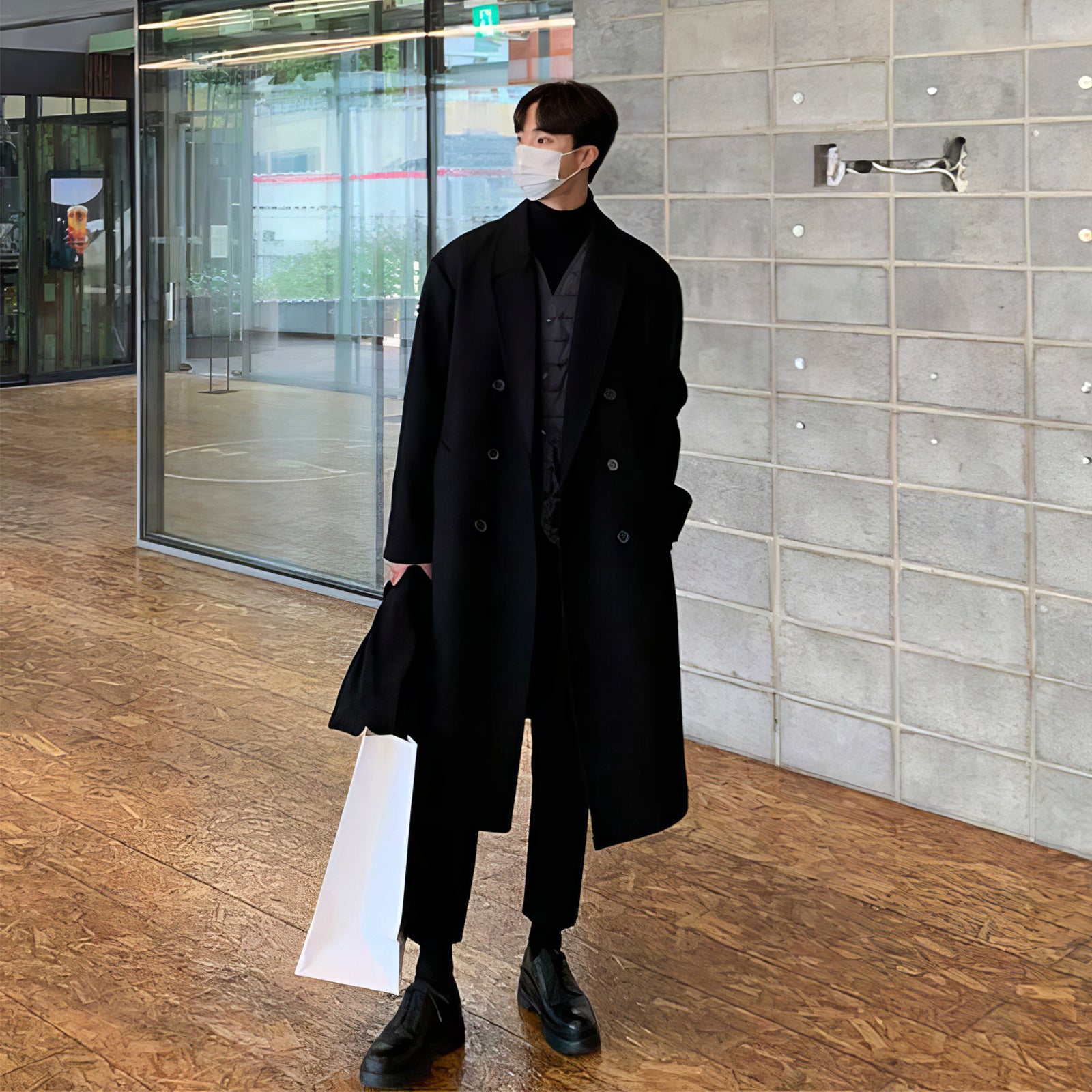 Мужское пальто 798Design с двубортной застежкой и классическим дизайном в ретро-стиле. Модель с длинными рукавами и прямым силуэтом выполнена из полиэстера, вискозы, шерсти и эластана, сочетает тепло, комфорт и универсальный стиль для осени и зимы.