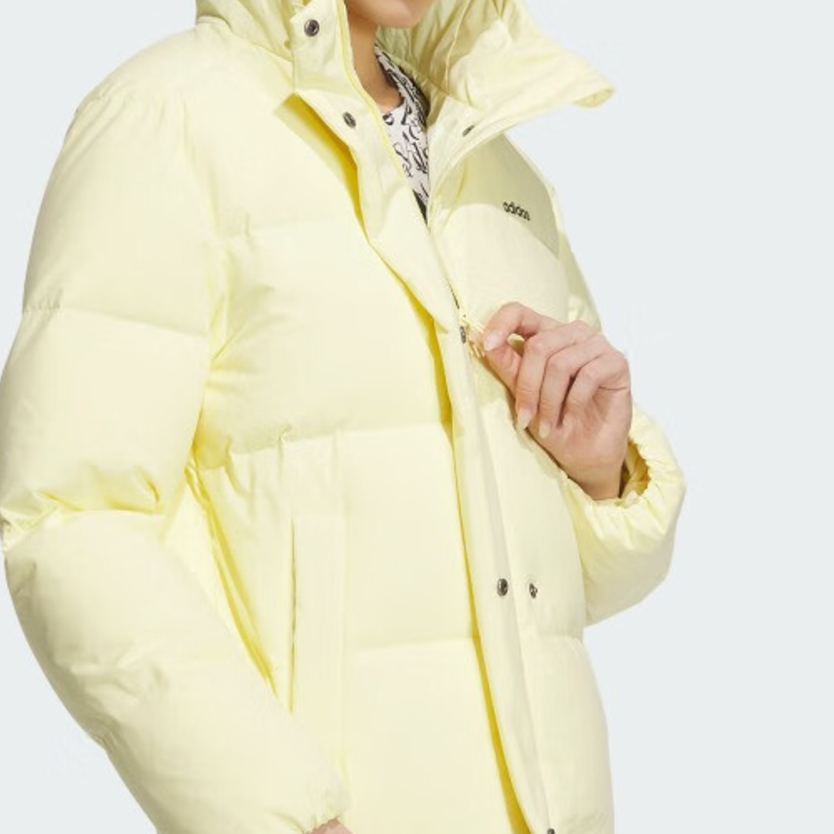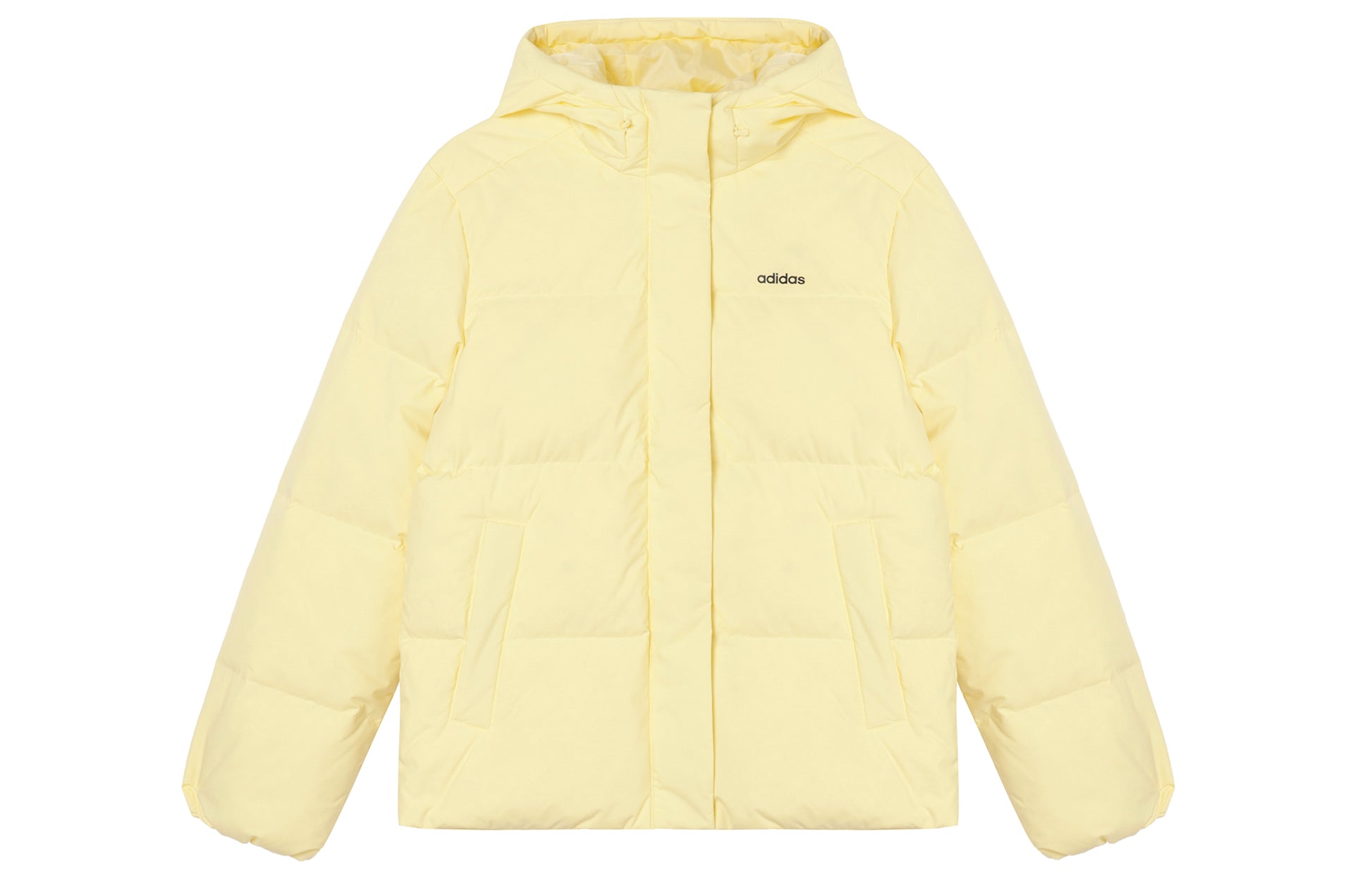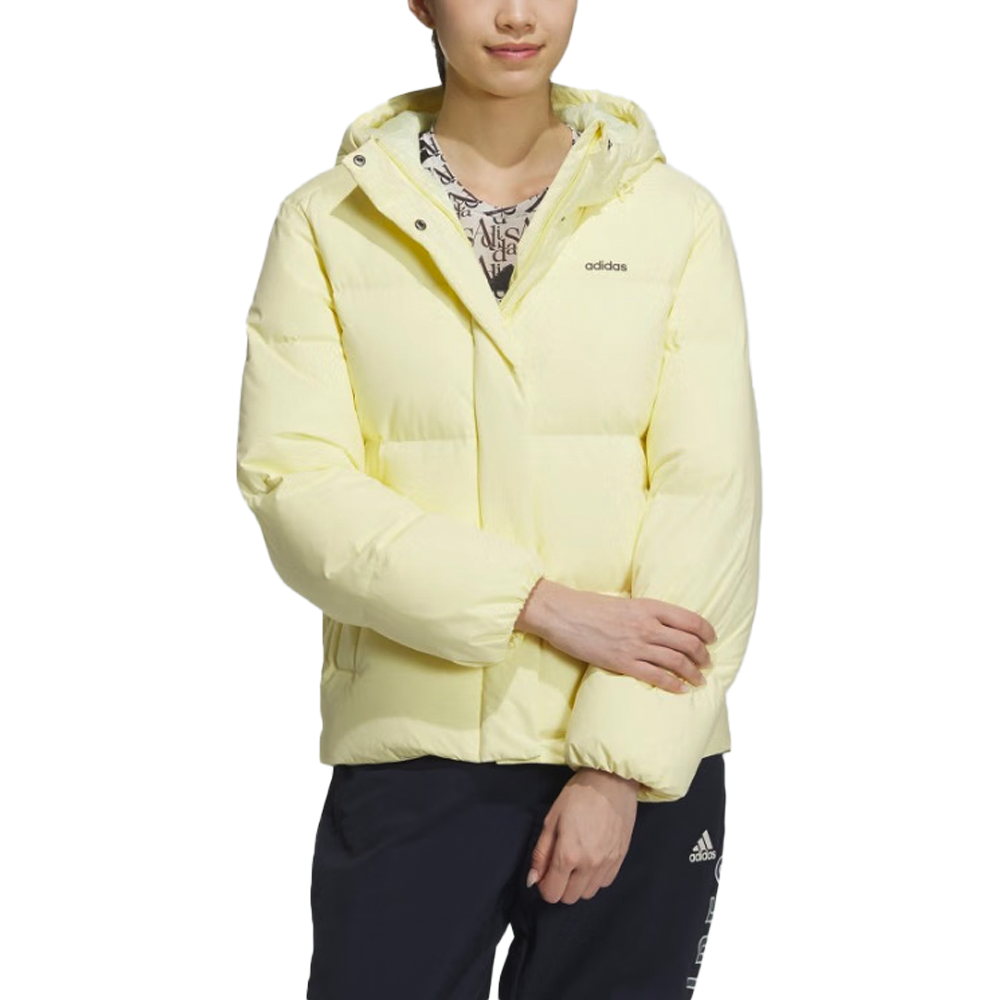 Женский пуховик Adidas с капюшоном и длинными рукавами, выполненный в теплом и удобном стиле “breaded”, идеально подходит для холодной погоды.